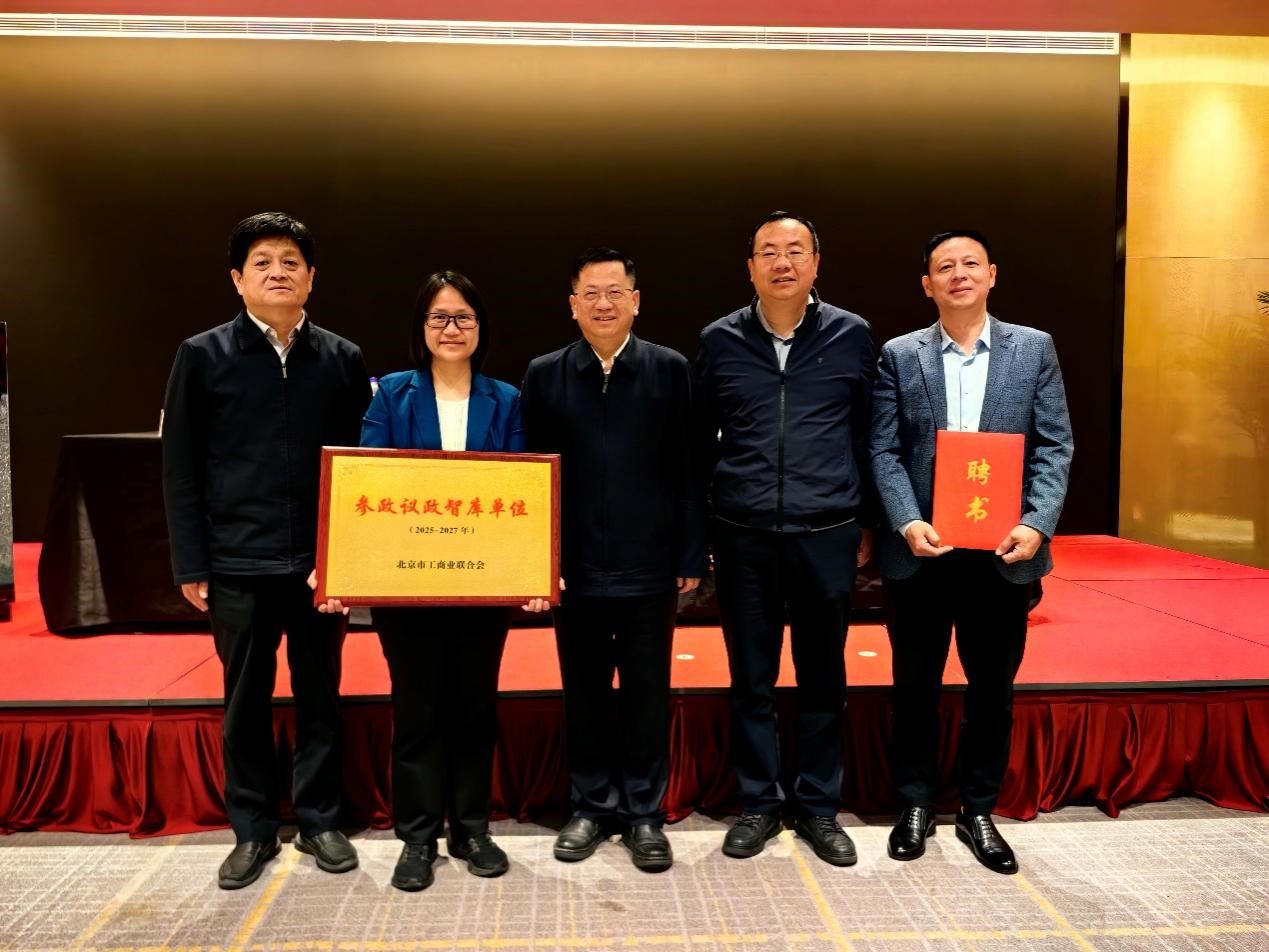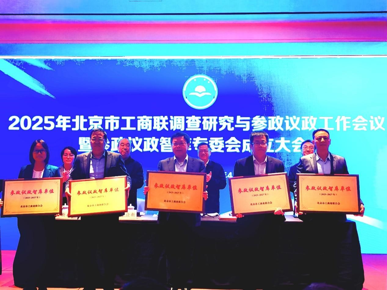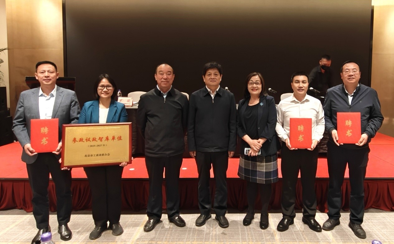 4月27日,北京市工商联2025年调查研究与参政议政工作会议暨参政议政智库专委会成立大会在通州副中心隆重举行。会议对2024年市工商联参政议政工作进行了总结,对先进单位和个人进行了表彰,同时新增我校等5家单位为“北京市工商联参政议政智库单位”,3044am永利集团副院长蒋贵凰代表学校接牌。