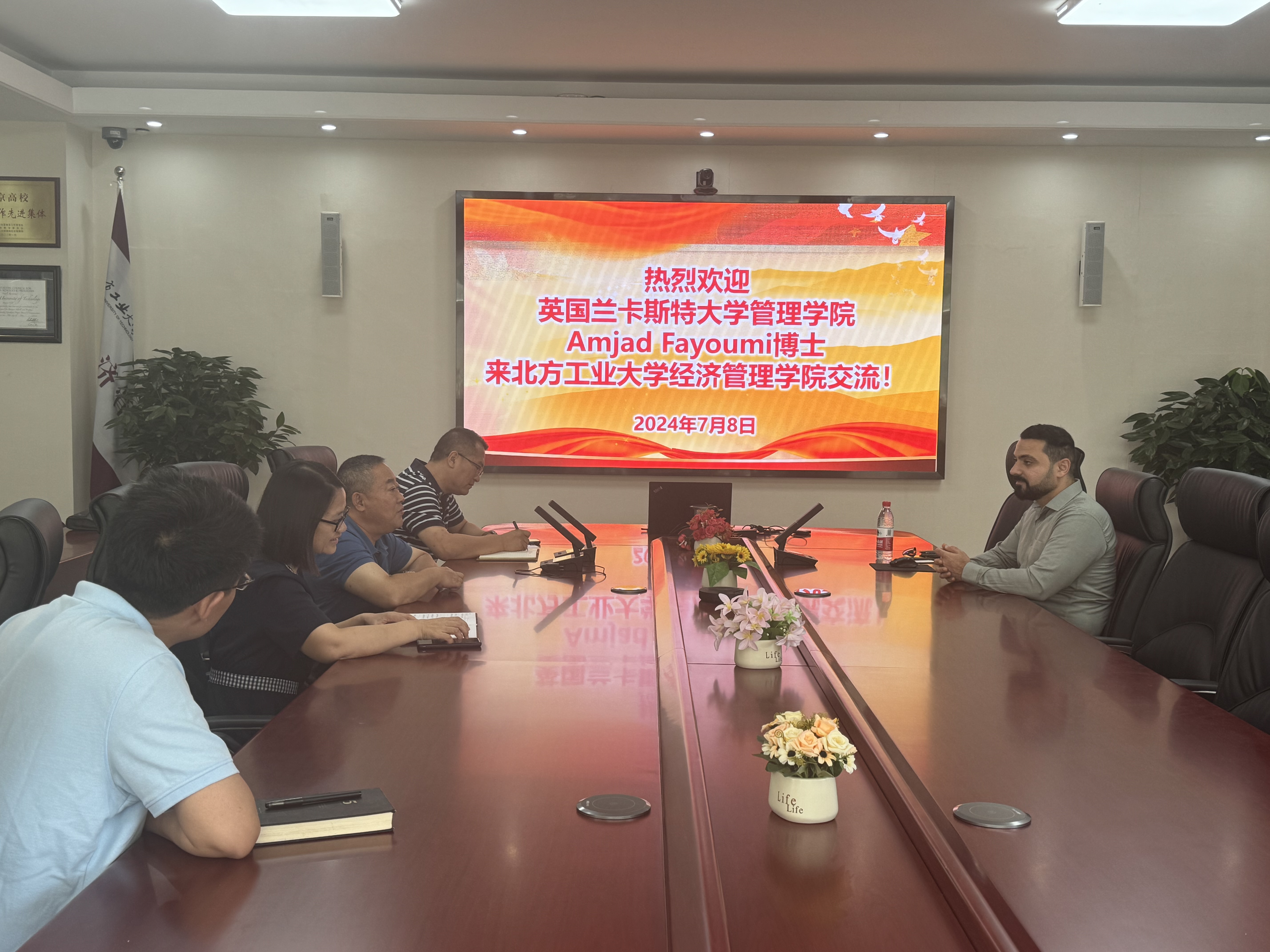 2024年7月8日上午,英国兰卡斯特大学管理学院Amjad Fayoumi博士到3044am永利集团进行交流,学院院长赵继新、副院长孙强、副院长蒋贵凰及教师代表王学成博士参加了交流。