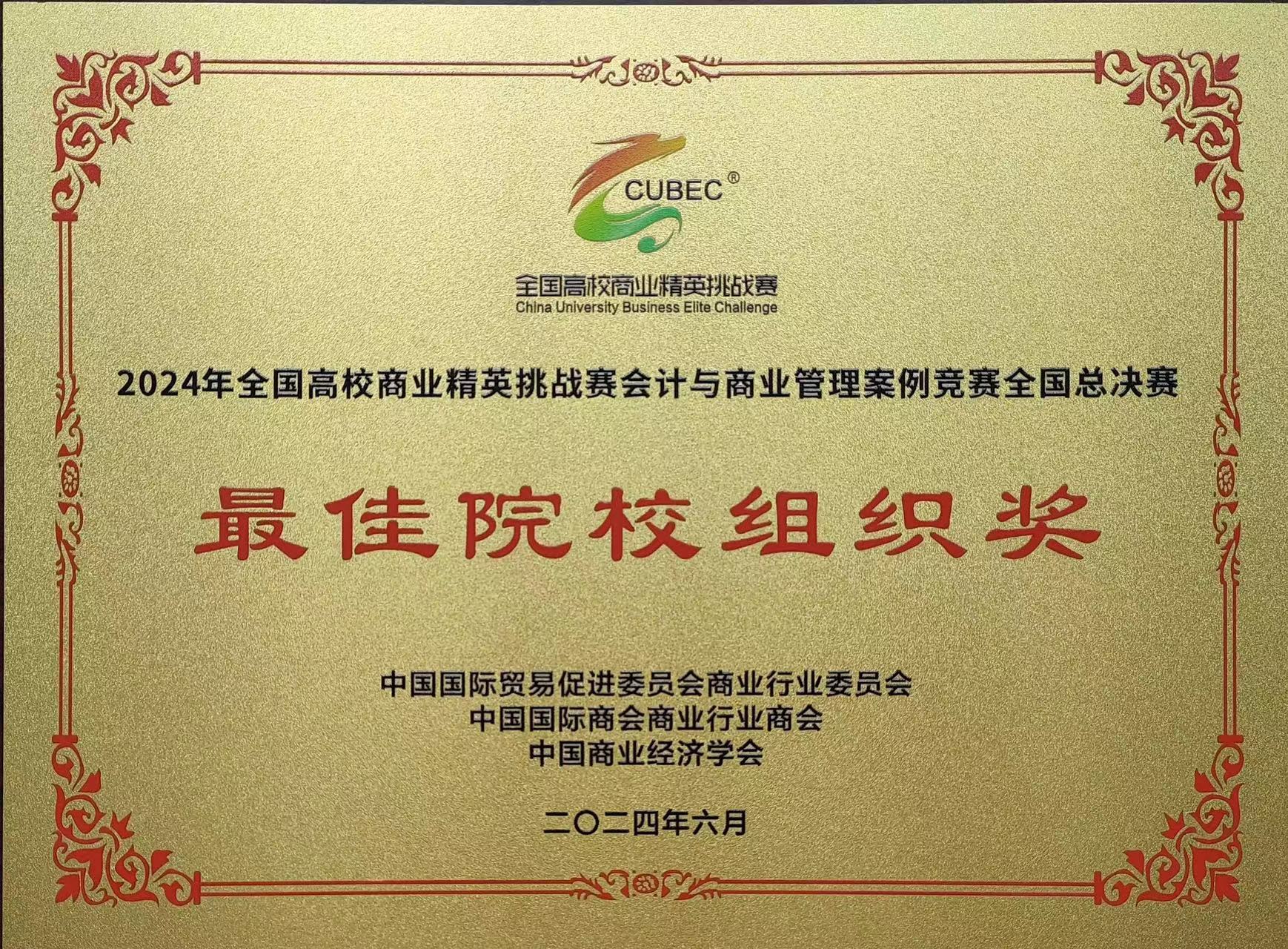 2024年6月16日,全国高校商业精英挑战赛会计与商业管理案例竞赛总决赛成功举办。我校3044am永利集团50名学生组成的5支研究生代表队和5支本科生代表队在陈旭霞、刘桂春、周霞、洪峰、王放、李宜、贾海波、刘捷、宁美军、林芳十位老师的带领下参加了比赛。本次比赛于线上进行,经过激烈的比赛角逐,我校学生从2300支参赛队伍中脱颖而出,获得一等奖六项、二等奖四项。其中一支代表队晋级全国精英赛,同时我校也荣获“最佳院校组织奖”的荣誉称号。