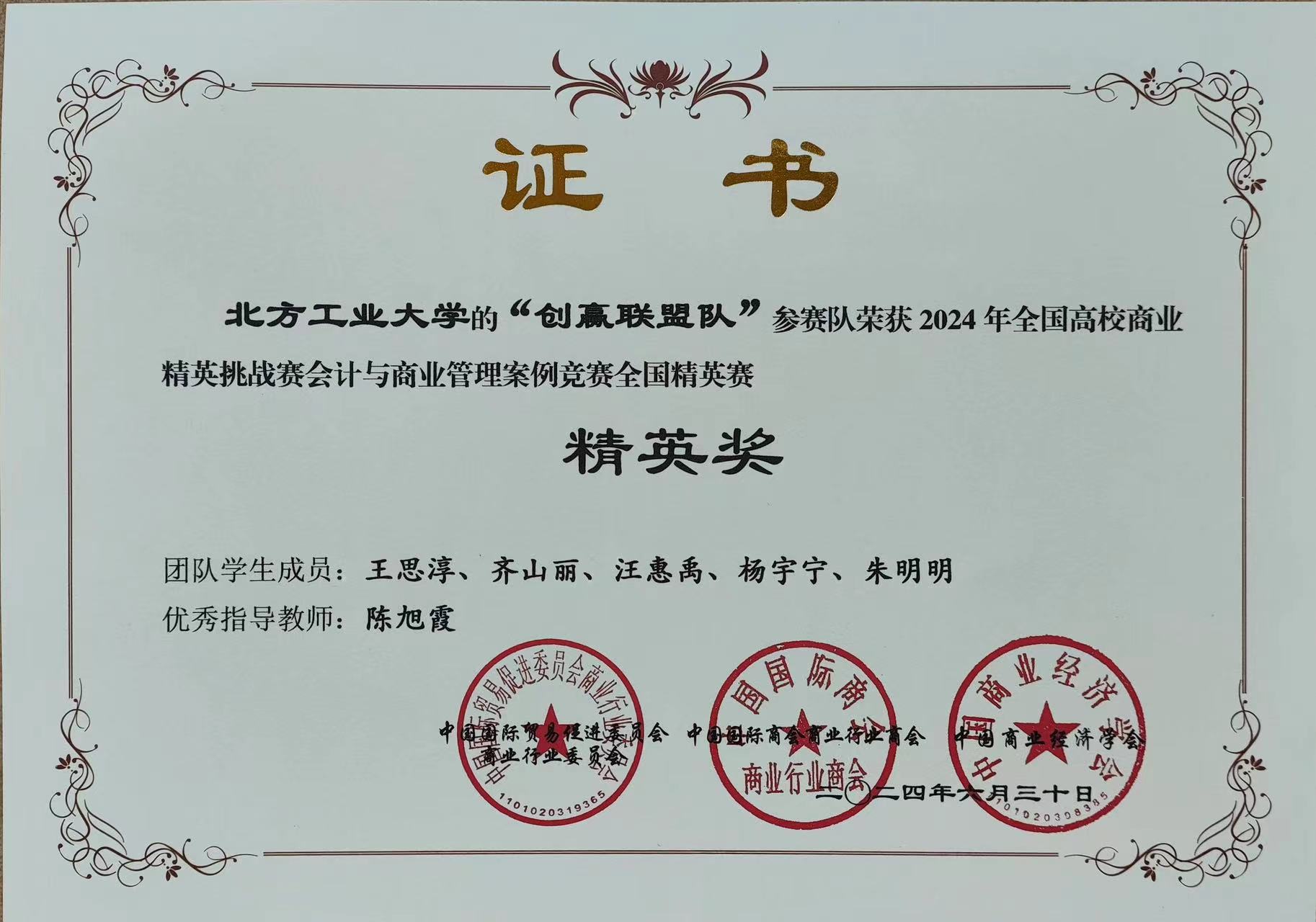 参赛学生(杨佳琪、徐博扬、郭鑫、卢彤、李汀);指导教师(宁美军)