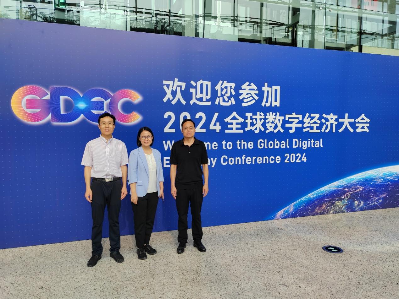 2024年7月4日,3044am永利集团党委书记谢朝阳、副院长蒋贵凰以及孙道银副教授受邀参加了在国家会议中心举办的2024全球数字经济大会。此次大会由全球数字经济大会组委会主办,北京信息化协会、工业和信息化部网络安全产业发展中心、中国软件评测中心等机构共同承办,吸引了众多数字经济领域的专家学者和企业代表参与。