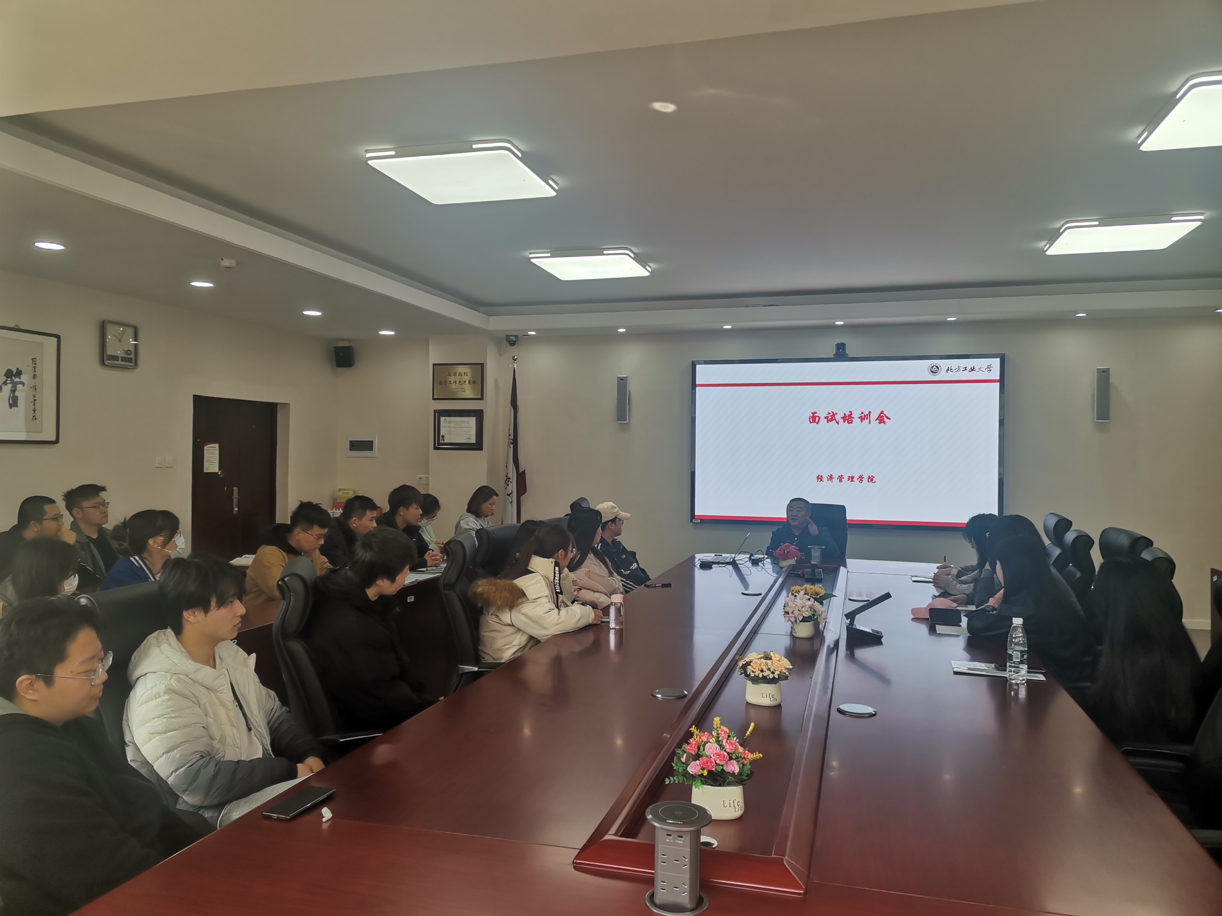为扎实做好2024届毕业生就业工作,帮助毕业生树立正确就业观,提高面试能力,提升就业信心,3月15日上午,经管学院在励学楼201会议室组织开展面试培训会,赵继新院长为同学们进行面试指导。30余名毕业生参加了培训。