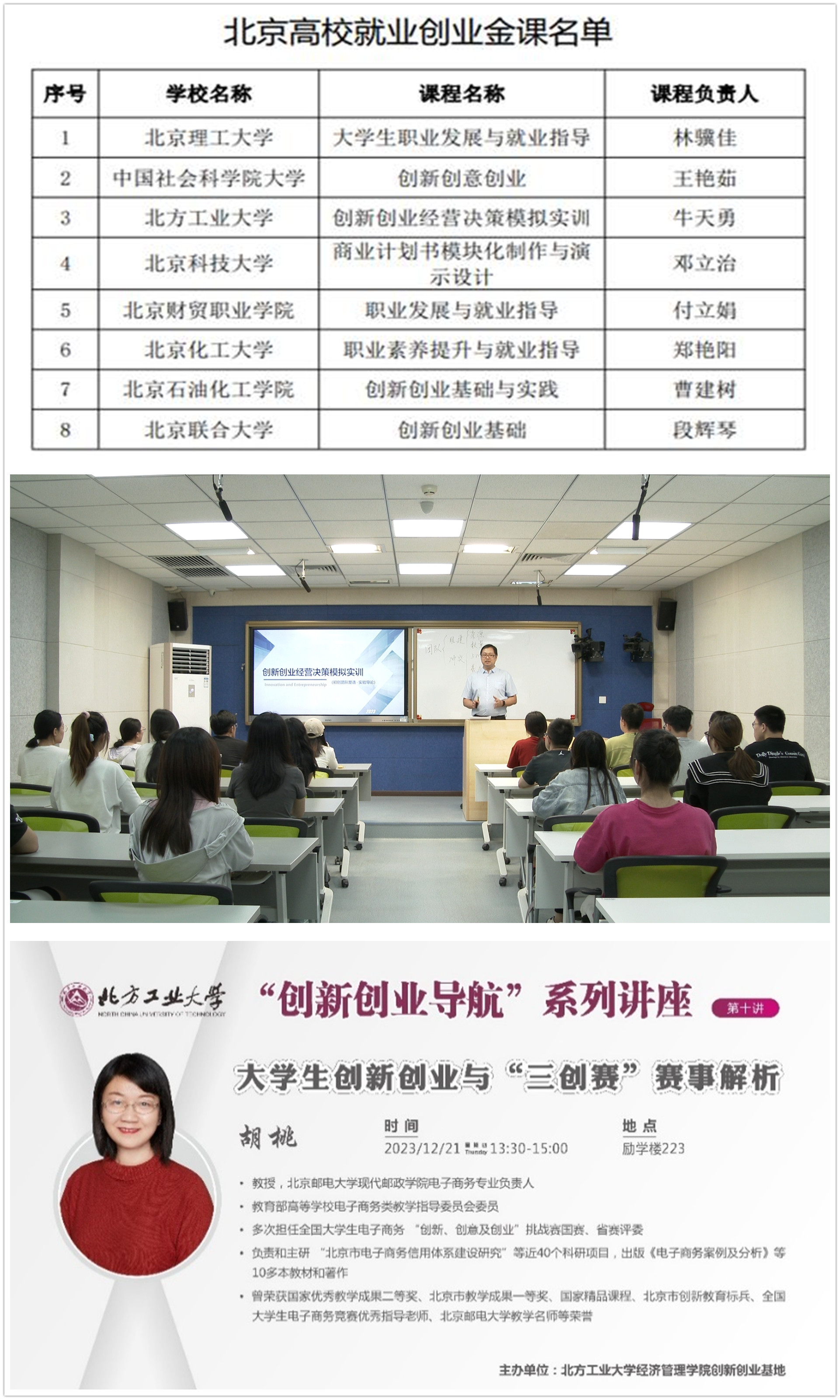 学院推动创新创业人才赋能培养,以学院北京市级实验教学示范中心为依托,打造创新创业基地。虚拟演录播智慧教室、双创路演室、演播室等多间实验室,多款支撑国家级、省部级创新创业竞赛的软件平台,有效提升了学生创新学习的指导和实践能力。学院《创新创业经营决策模拟实训》课程被评为北京高校就业创业金课。学院构建产学协同育人机制,邀请校外导师作创业导师,每周开设创业导师讲座,建立了竞赛中心,搜集整理推动学科专业竞赛,引导和支持学生创新创业促进学风建设。