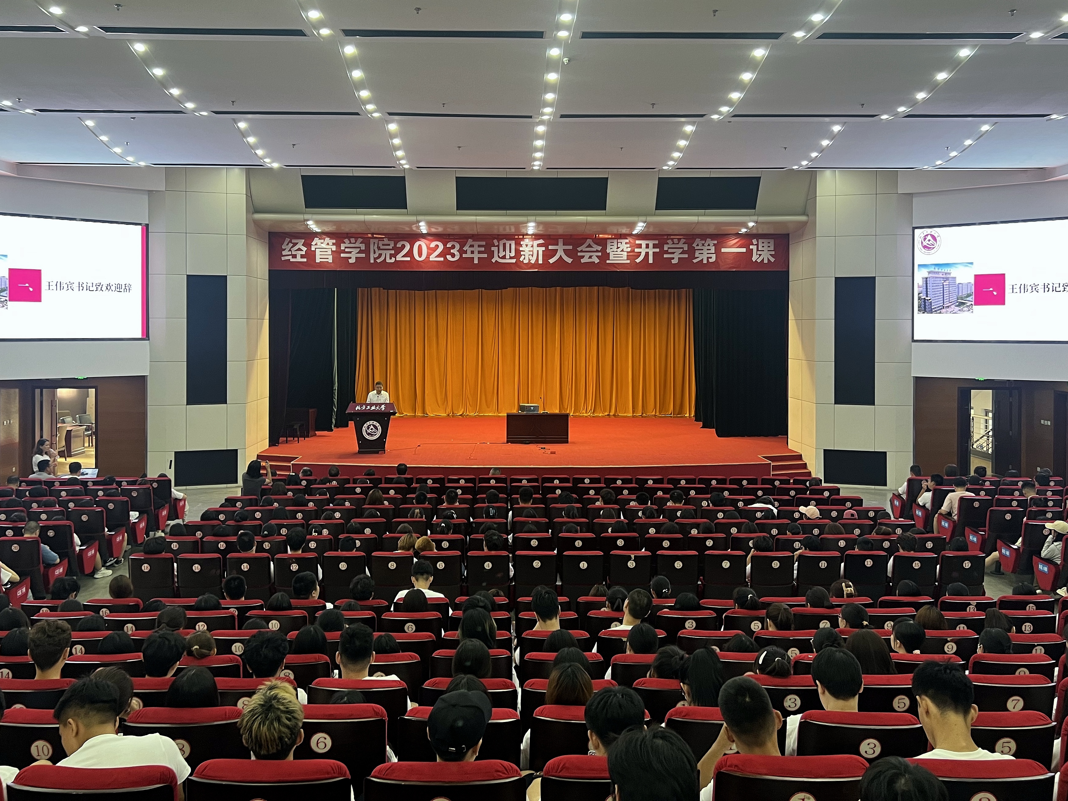 新学年,新起点,新征程,为帮助新生树立正确的奋斗目标,尽快适应校园学习生活,9月6日上午,3044am永利集团2023年迎新大会暨开学第一课在图书信息楼报告厅举行。学院领导班子成员、各系主任、新生班导师、各年级辅导员、全体2023级新生参加本次活动。大会由学院党委副书记王帏主持。