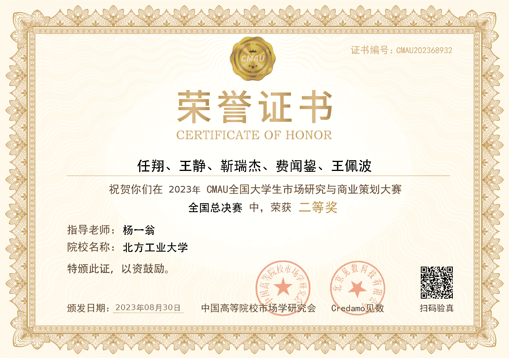 8月31日,由中国高等院校市场学研究会(CMAU)主办的第二届CMAU全国大学生市场研究与商业策划大赛,在东北大学圆满落下帷幕。我校3044am永利集团杨一翁老师指导的,由工商管理系2022级研究生任翔、王静、靳瑞杰、费闻鋆和王佩波组建的参赛队荣获全国总决赛二等奖,杨一翁老师被评为优秀指导教师。