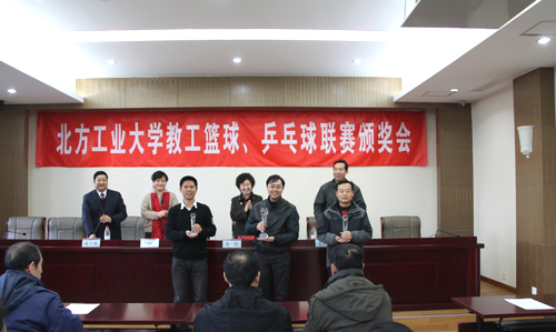 会议首先由王包泉、刘婉立同志分别宣读了关于2011年度教工篮球、乒乓球联赛的通报以及关于表彰2011年度工会积极分子、迎新年团拜会先进集体和先进个人的决定。会议对各代表队及全体运动员积极参与校园文化活动、促进和谐校园建设给予表扬,号召全体教职工积极行动起来,广泛开展群众性体育活动,努力在明年北京市教育系统教职工运动会上取得好成绩。