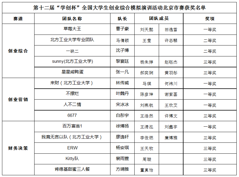 2025年7月,第十二届“学创杯”全国大学生创业综合模拟演训活动北京市赛获奖名单正式发布。我校参赛队伍凭借出色的表现和卓越的团队合作,在激烈的竞争中脱颖而出,荣获北京市赛一等奖5项、二等奖2项、三等奖7项,并有3支队伍成功晋级全国总决赛。