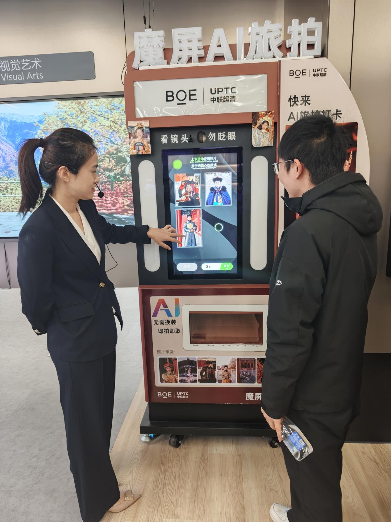 互动体验环节中,同学们沉浸式体验了裸眼3D、AI旅拍、智慧数字课堂等场景化应用,直观感受到显示技术如何重塑娱乐、教育、文旅等日常生活领域。