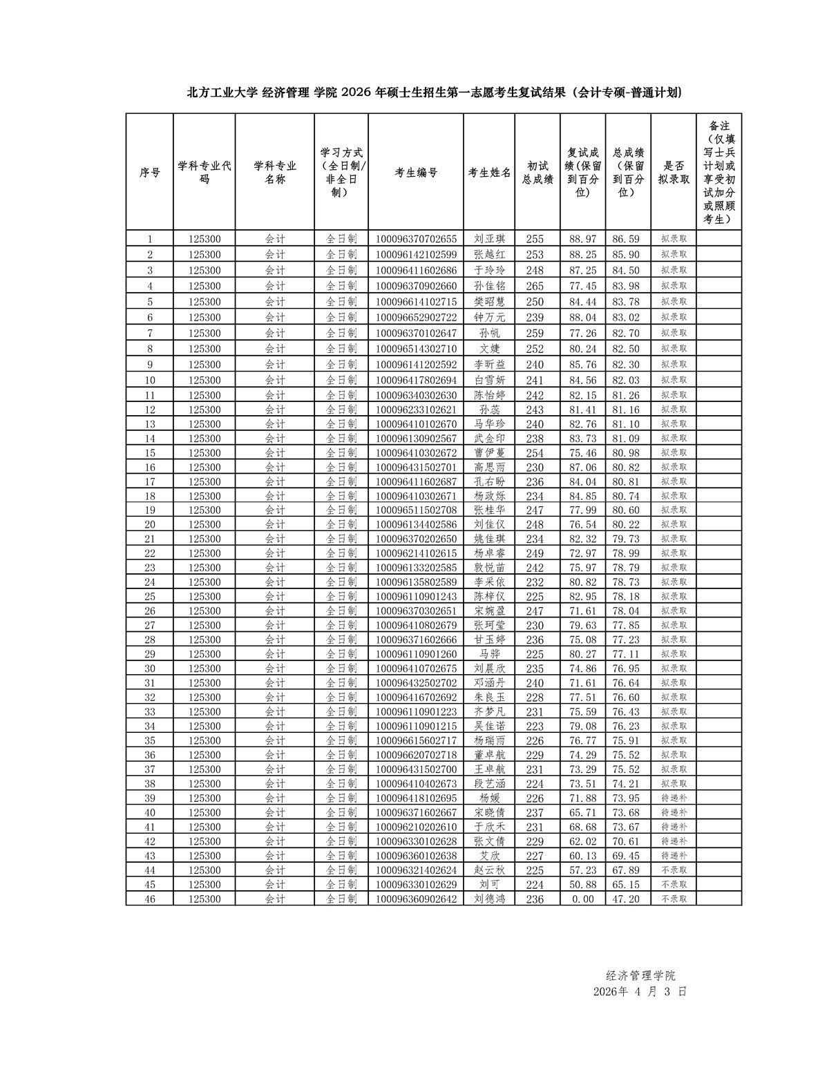 3044am永利集团2026年硕士生招生第一志愿考生复试结果(会计专硕-普通计划)