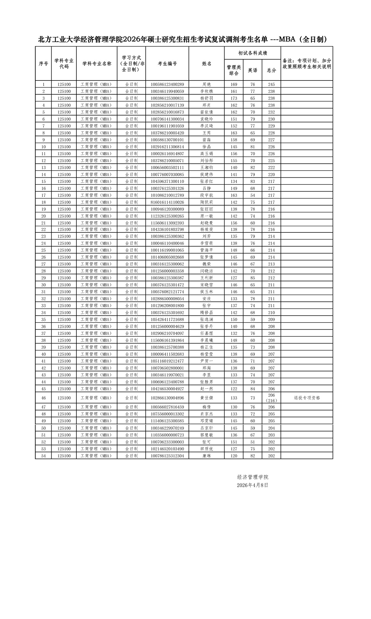 3044am永利集团2026年硕士研究生招生考试复试调剂考生名单 ---MBA(全日制)