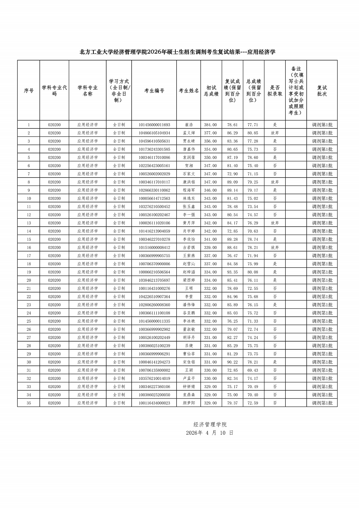 3044am永利集团2026年硕士生招生调剂考生复试结果---应用经济学