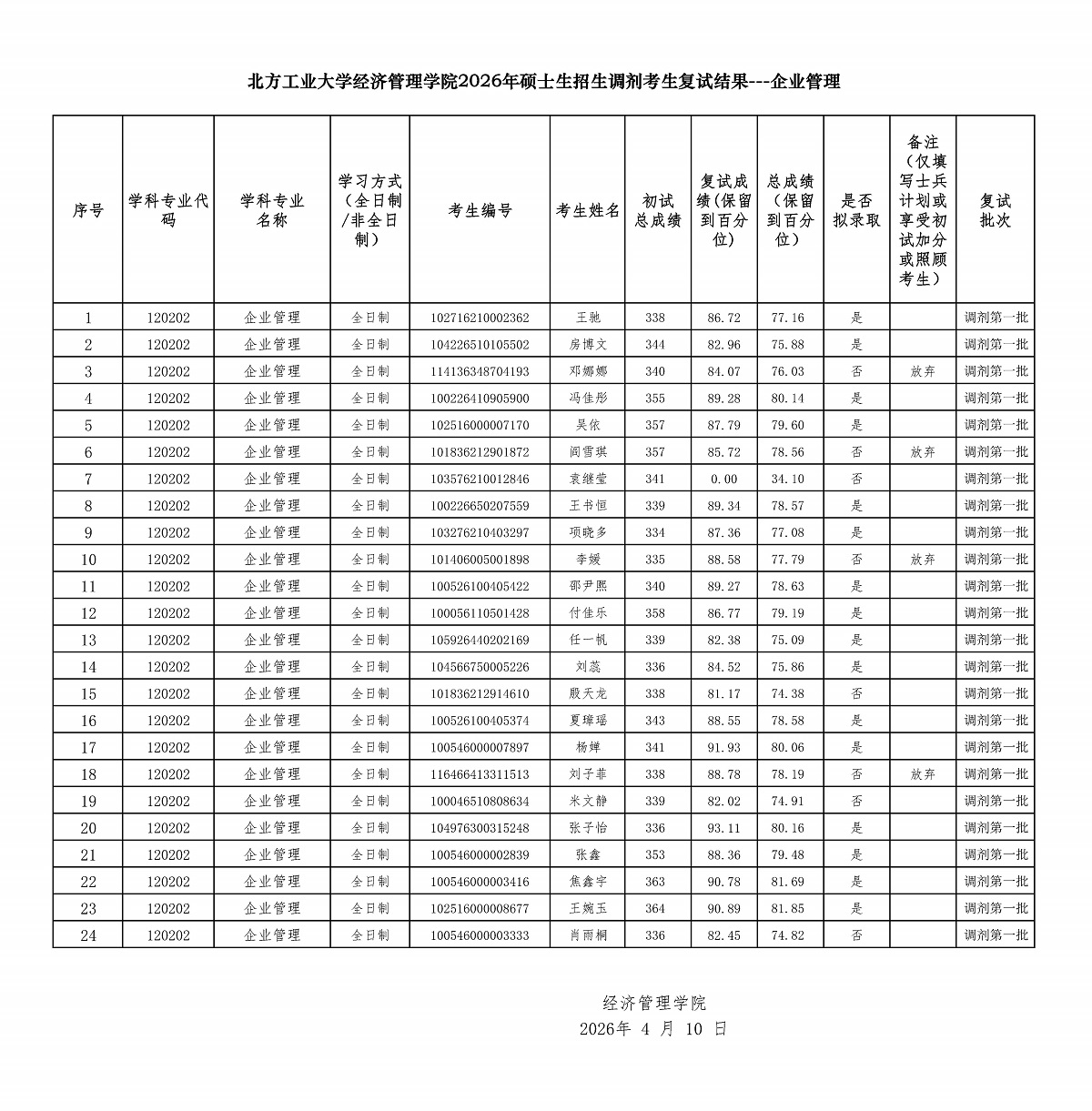 3044am永利集团2026年硕士生招生调剂考生复试结果---企业管理