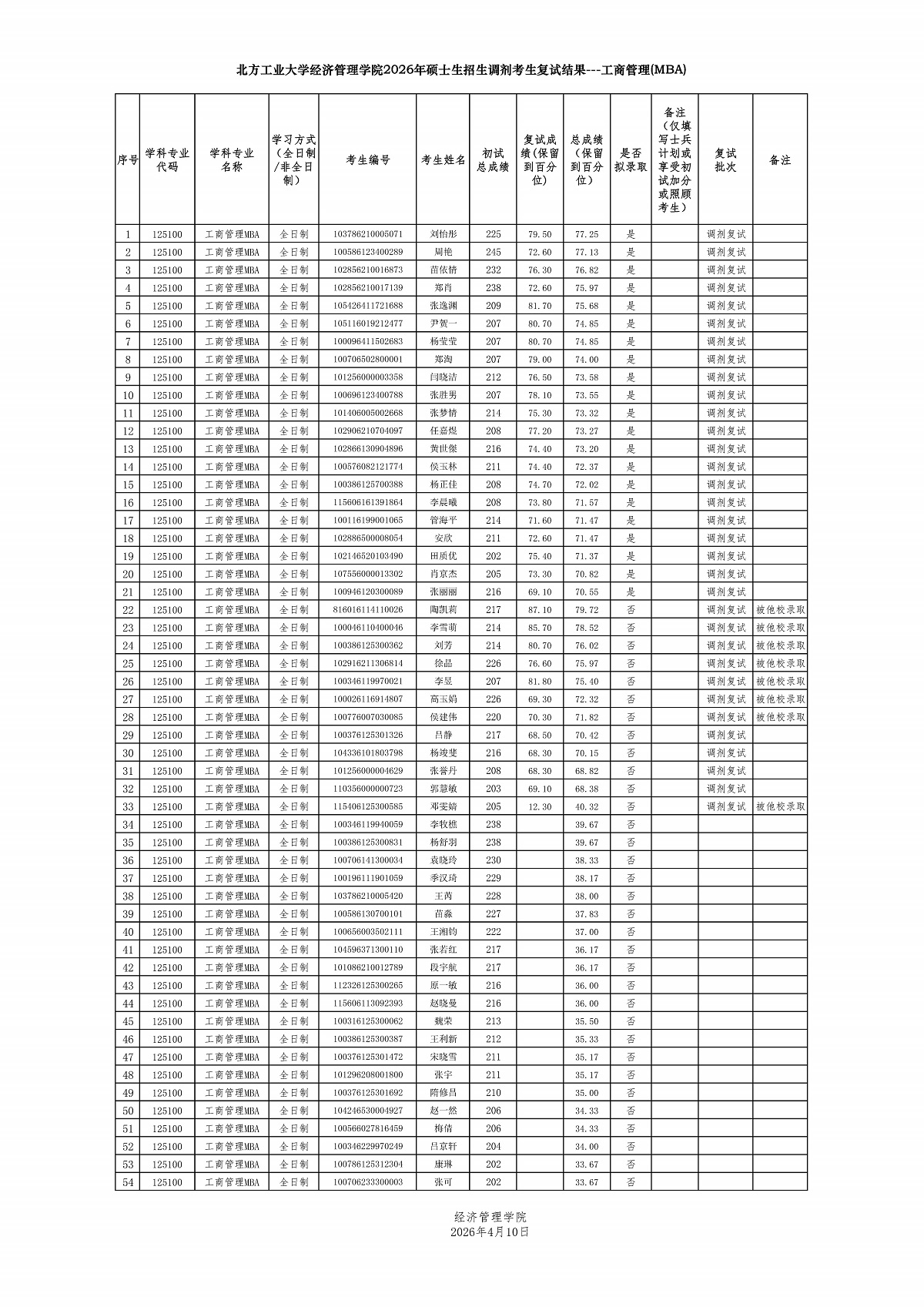 3044am永利集团2026年硕士研究生招生考试复试调剂考生名单 ---MBA(全日制)
