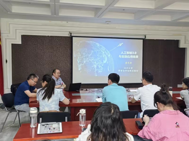 6月5日下午,应3044am永利集团邀请,四川大学商学院特聘教授余乐安来校进行讲学,在励学楼301会议室为我校师生作了题为“人工智能3.0与金融应用场景”的学术报告。报告会由经济系主任王书平教授主持。