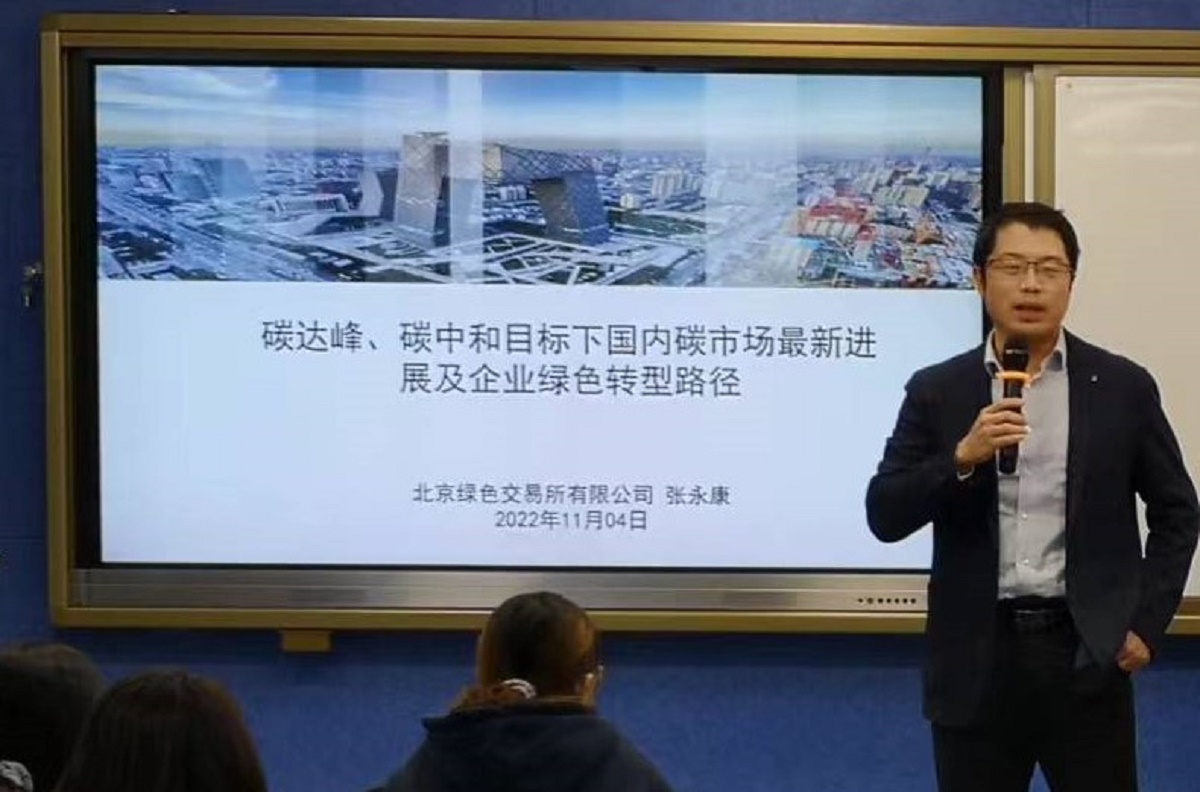 11月4日下午,3044am永利集团在励学楼135举行第4期“励学讲堂”活动。北京绿色交易所绿色发展中心主任张永康受邀为会计系师生做了题为“碳达峰、碳中和目标下国内碳市场最新进展及企业绿色转型路径”的学术报告。讲座由会计系主任王志亮教授主持。
