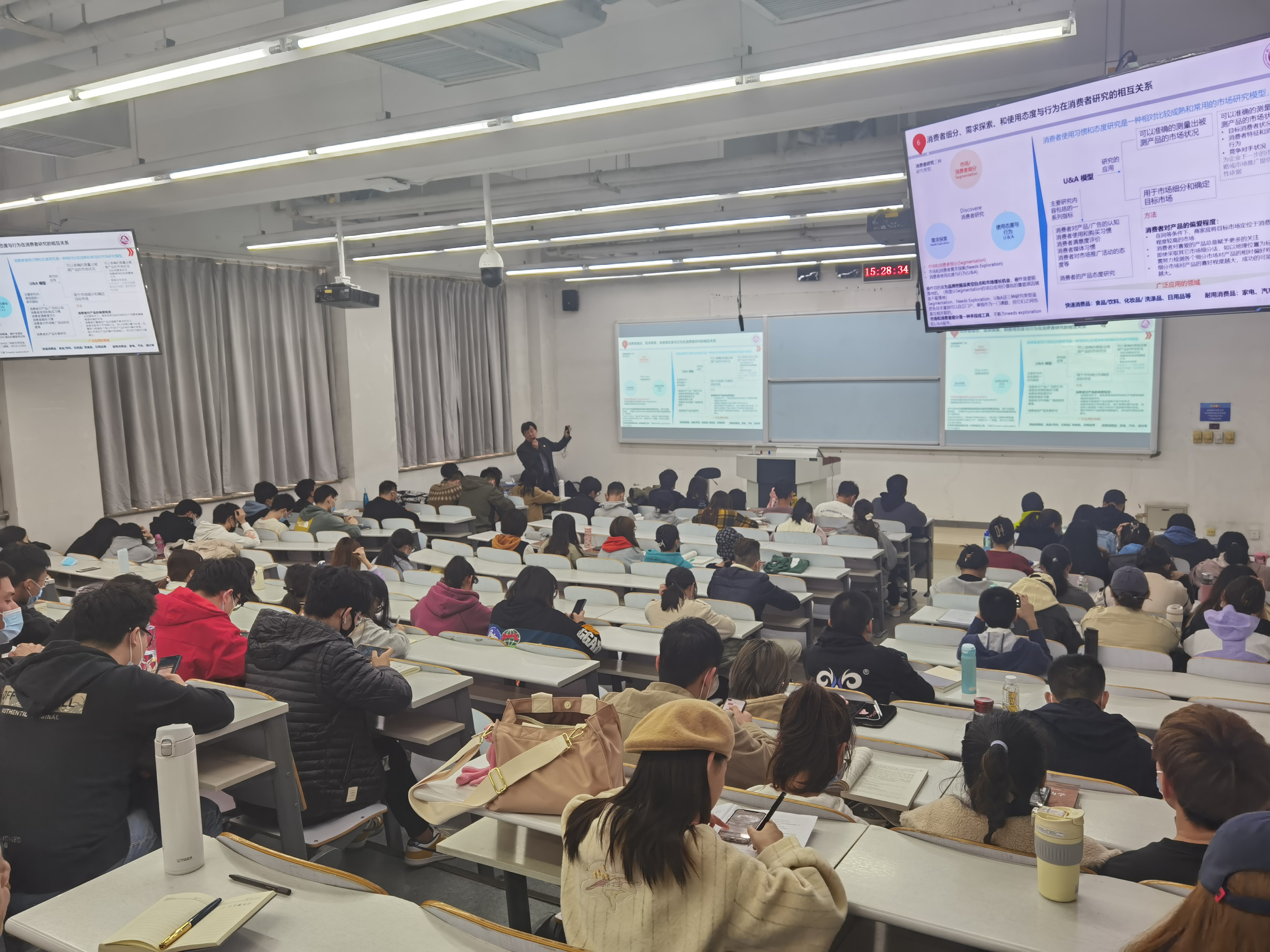 吴老师在讲座过程中,通过案例分析和咨询公司实战应用体验,给同学们展示了管理咨询公司和企业在个人消费品市场对消费者群体细分的实际操作模式与手法。尤其是通过客户细分与价值提供,以及客户细分与获客两个条线进行以上内容展开。