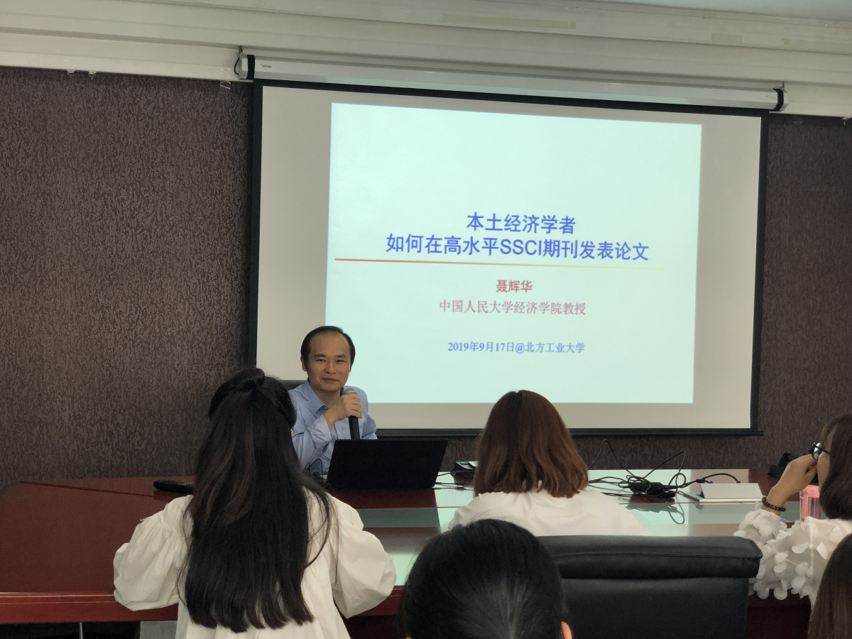 聂辉华教授介绍了本土的经济学研究者如何发表高水平学术论文。从论文选题、研究数据、研究方法、英文写作,作者、投稿等环节系统详实地讲解了如何写作并在在国际一流期刊发表高水平的研究论文。最后,聂辉华教授还就师生提出的问题进行了交流讨论。
