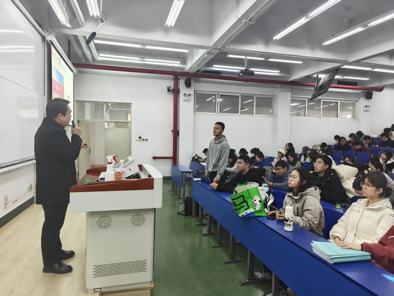11月21日,3044am永利集团“企业家进课堂”系列活动在浩学楼东 501 教室举行。活动特邀深圳天和双力物流自动化设备有限公司副总裁兼营销事业部总经理程军正担任主讲嘉宾,为2025级工商管理专业本科生带来了一堂主题鲜明、内容前沿的课程。
