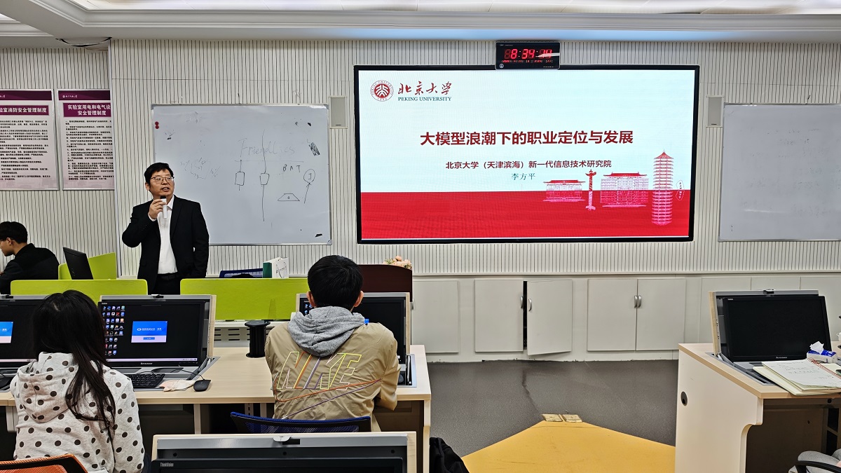 李方平副院长从大数据与人工智能应用的重要里程碑事件讲起,结合智慧医疗具体项目案例,深入剖析了大数据应用、科技与产业之间的关系。他详细介绍了基于大模型应用创新的AI大模型平台方案及“脑体协同”管理新模式,并现场展示了“小北健康”和“小雅医生”两项应用成果。随后,结合职业发展和创业经历,李方平系统阐述了大模型浪潮下的职业格局变化、职业定位、职业发展路径,为在座大学生提出强化AI工具使用能力、沉淀垂直行业专业深度、提升高阶综合软能力、保持敏捷适应和进化力的务实建议。