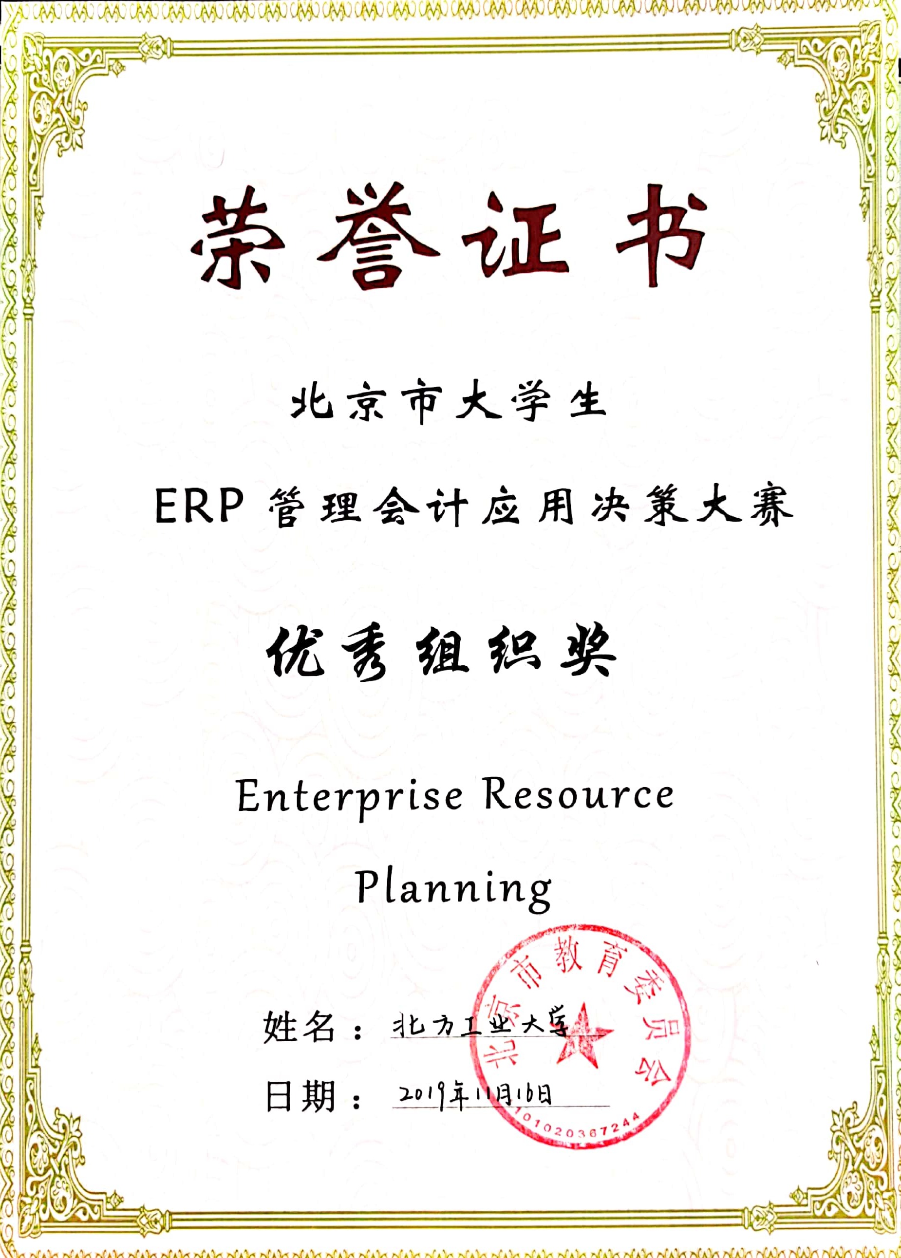2020ERP优秀组织奖 |