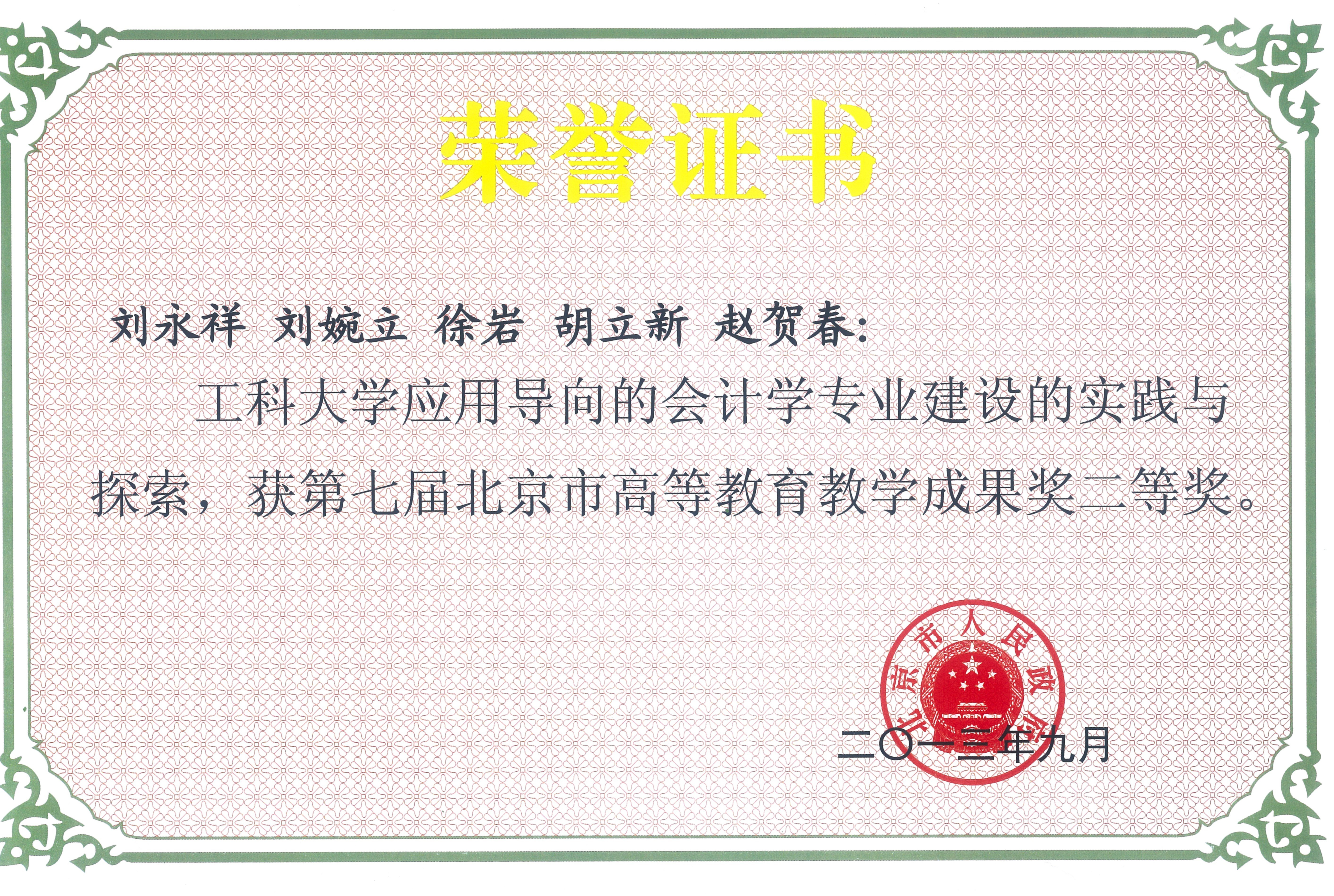 2012年,会计系一项教改课题获得永利集团3044am官方入口高等教育教学成果特等奖,北京市教育教学成果二等奖。