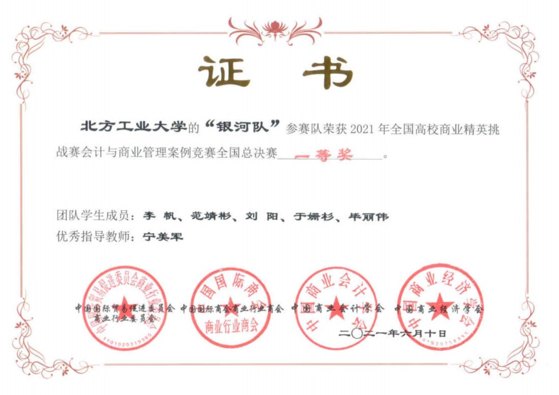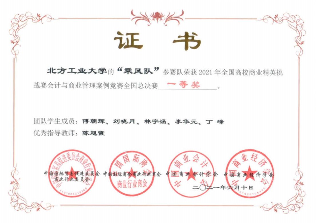 2021年全国高校商业精英挑战赛 会计与商业管理案例竞赛全国总决赛一等奖 |