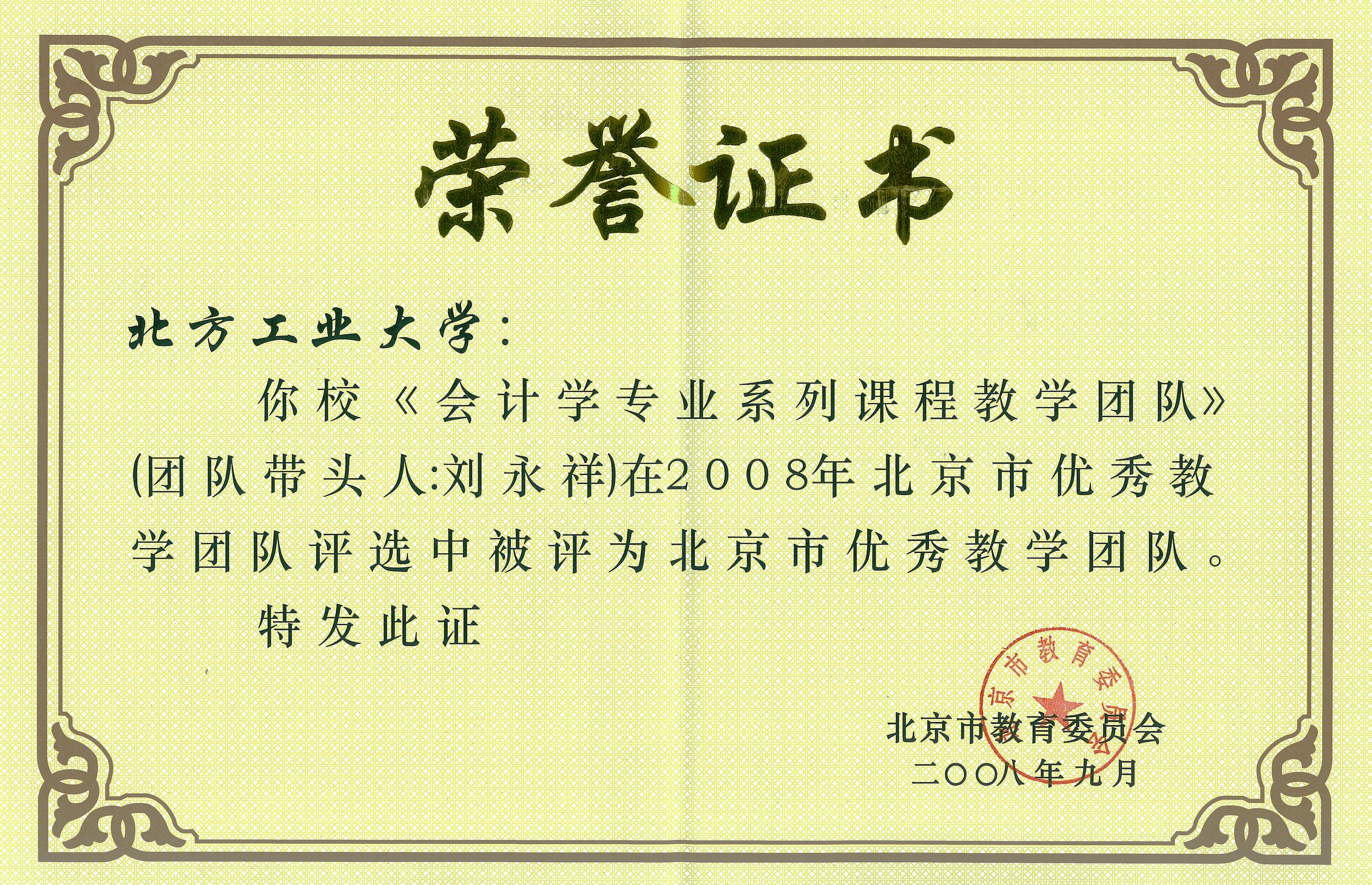 2008年,会计学系列课程教学团队被评为北京市优秀教学团队。