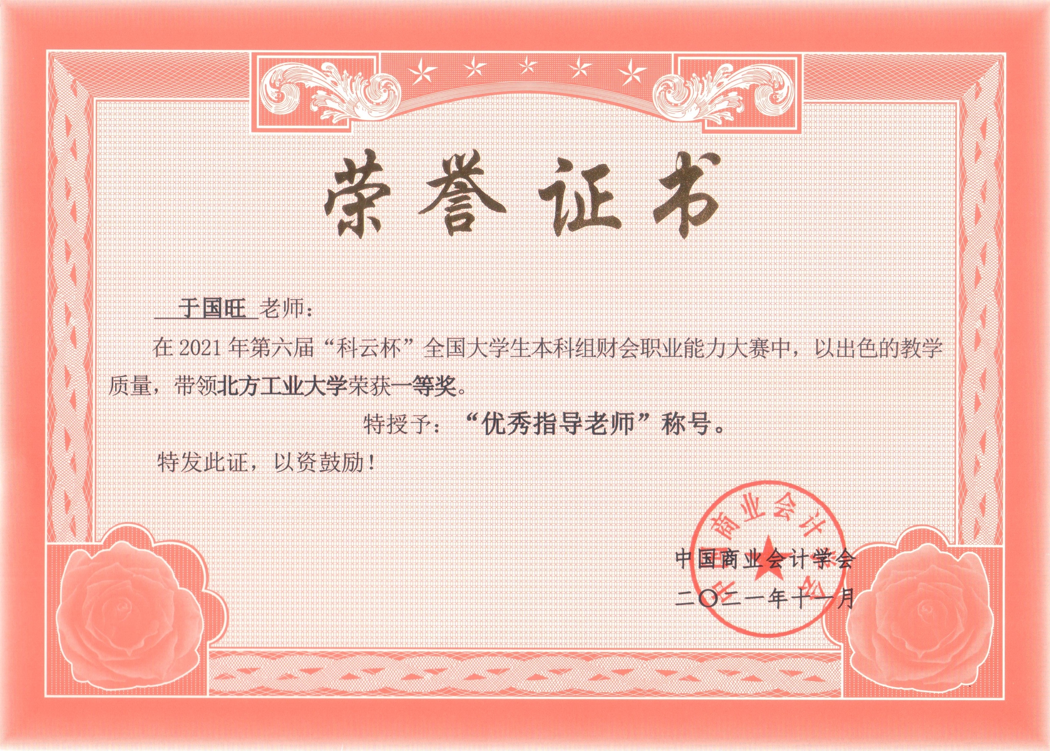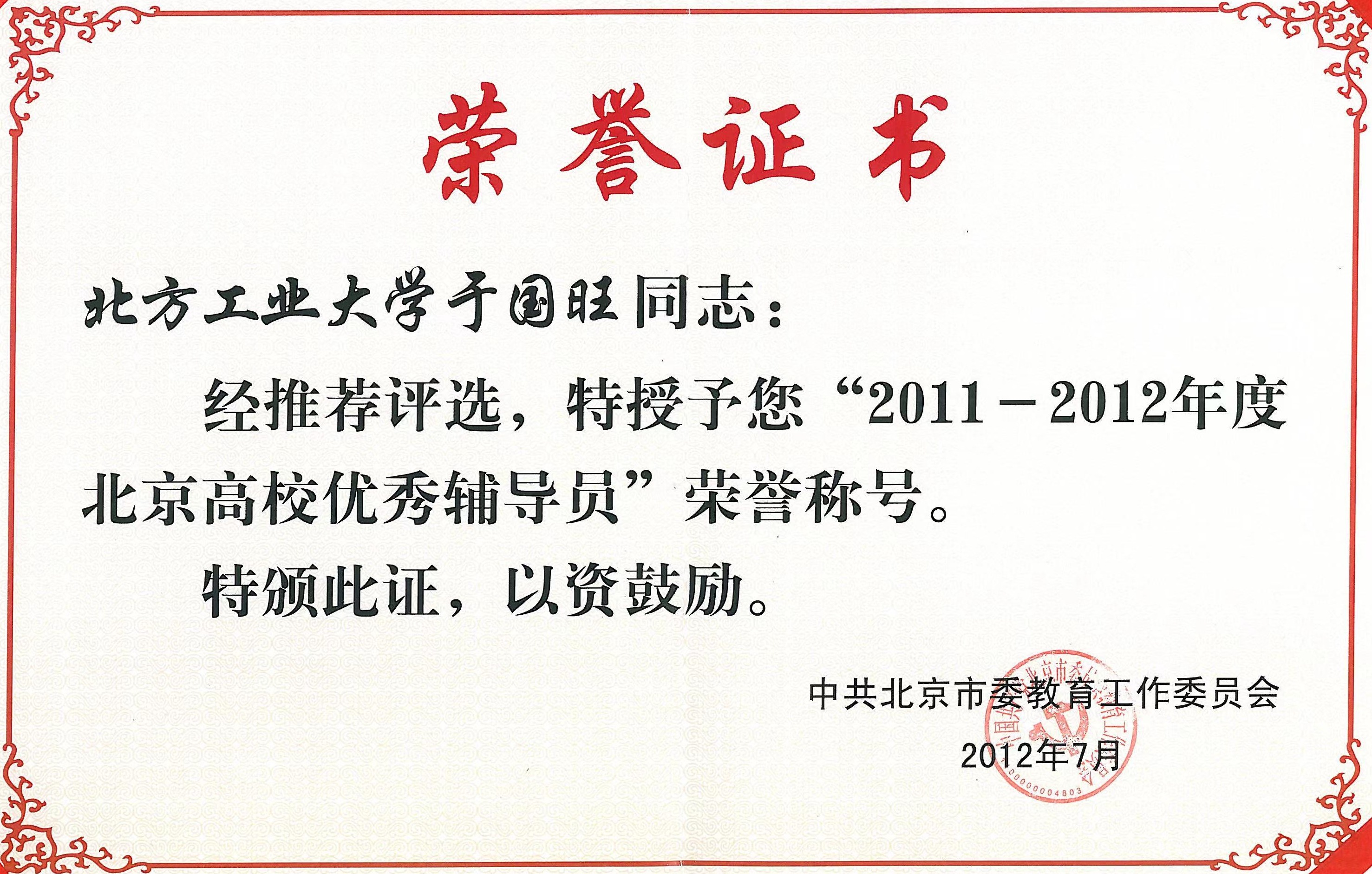 于国旺 北京高校优秀辅导员 |