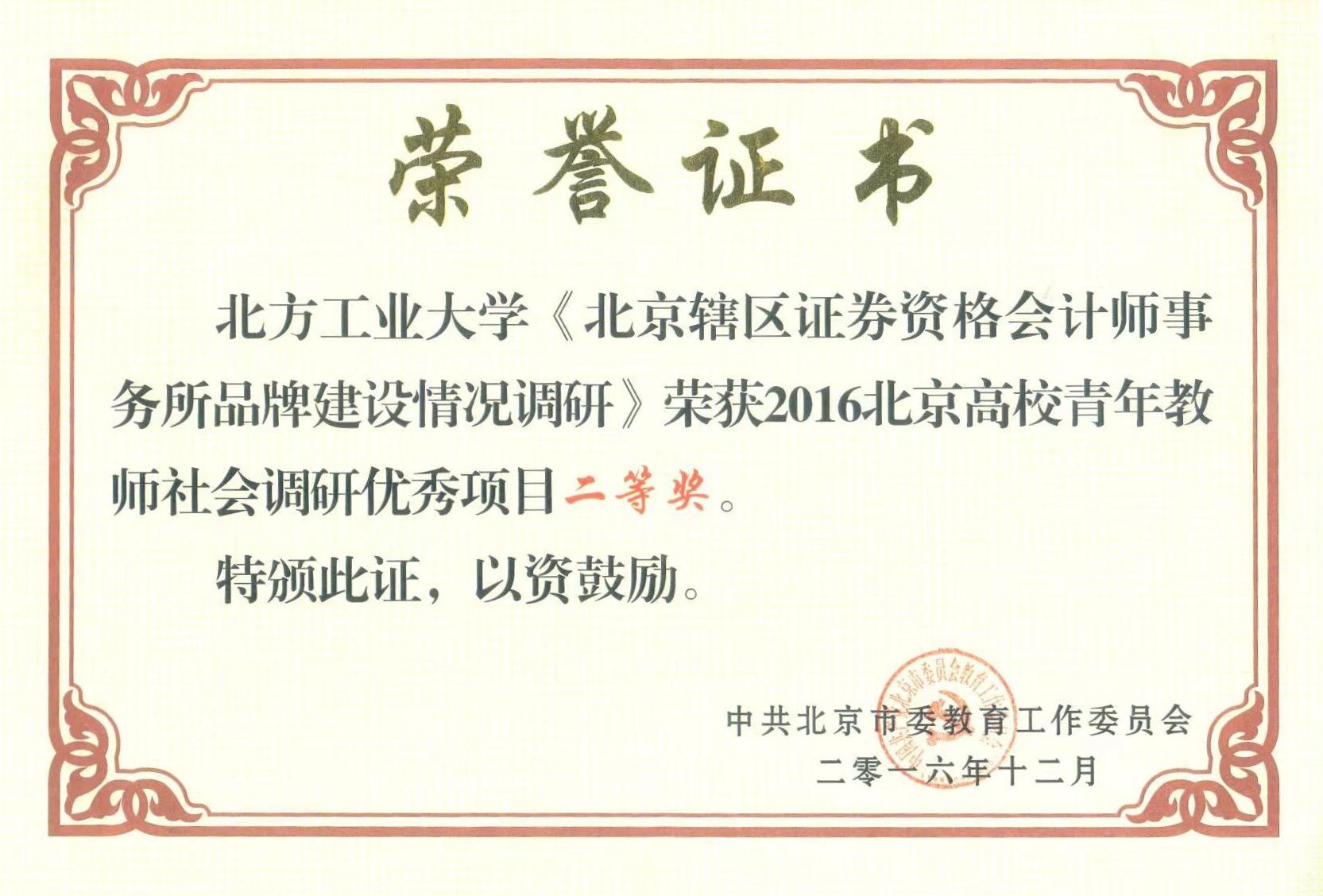 北京市高等教育教育教学成果二等奖 |