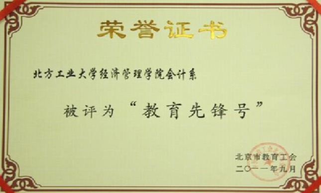 2011年,会计系被北京市教育工委评为“教育先锋号”先进集体。