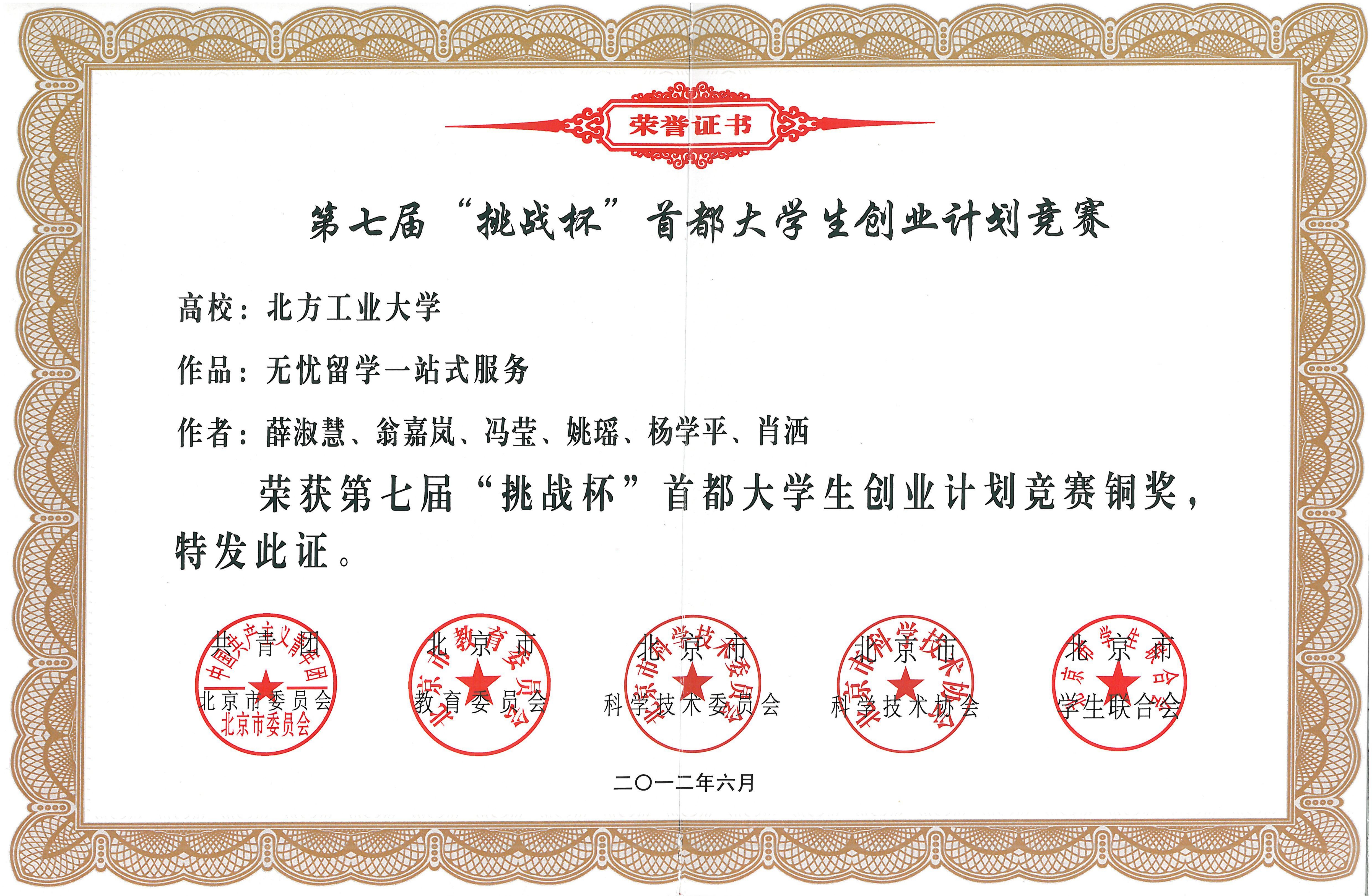 第七届“挑战杯”首都大学生创业计划大赛铜奖 |