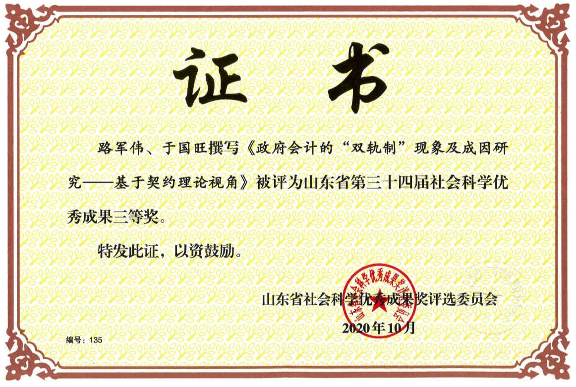 于国旺 山东省社会科学优秀成果三等奖 |