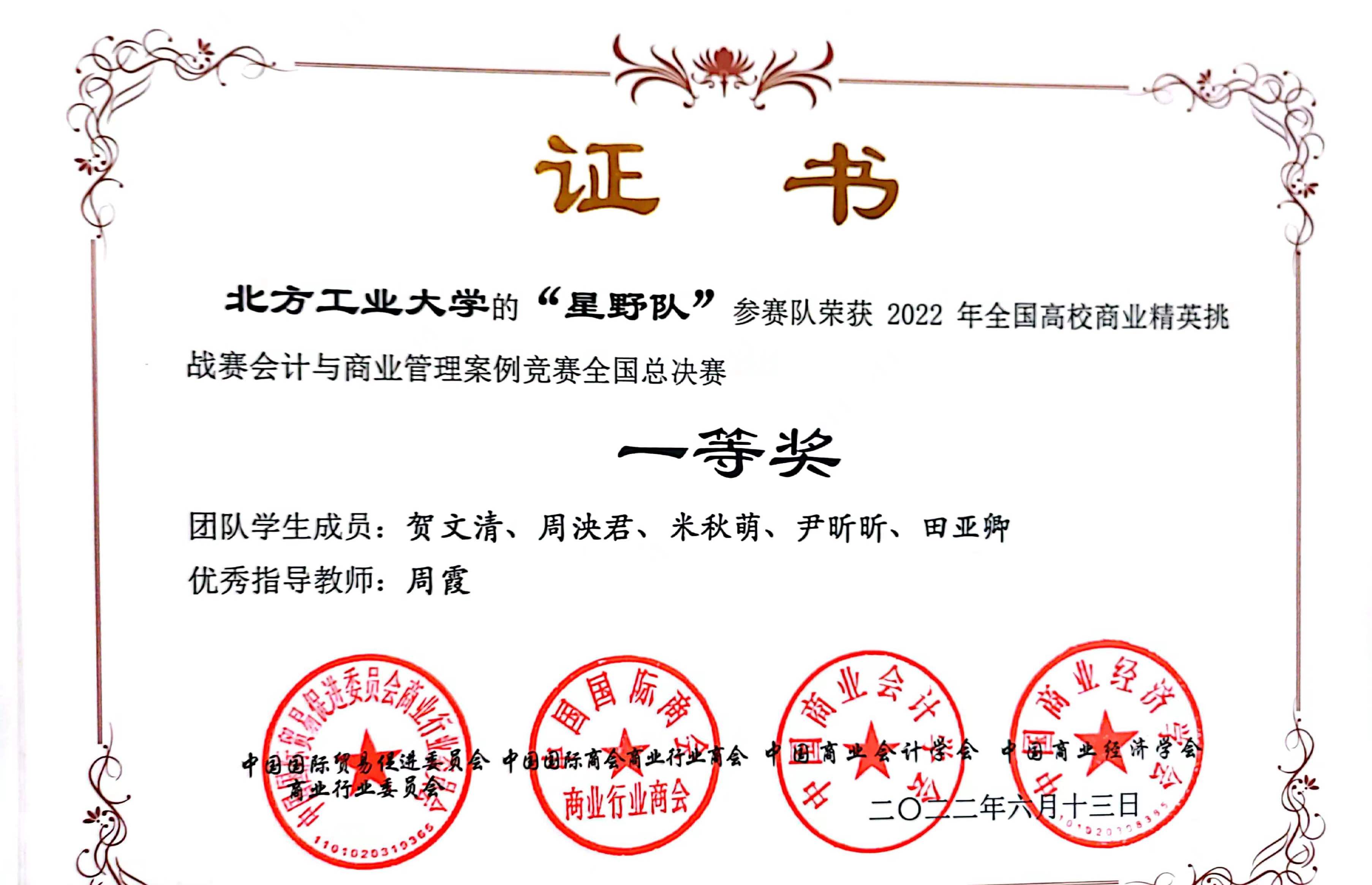 2022年全国高校商业精英挑战赛 会计与商业管理案例竞赛全国总决赛一等奖 |