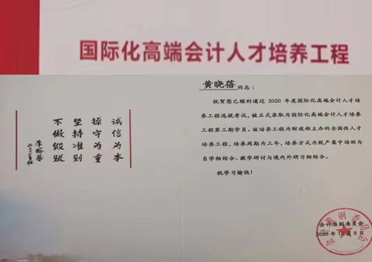 黄晓蓓 入选国际化高端会计人才培养工程 |