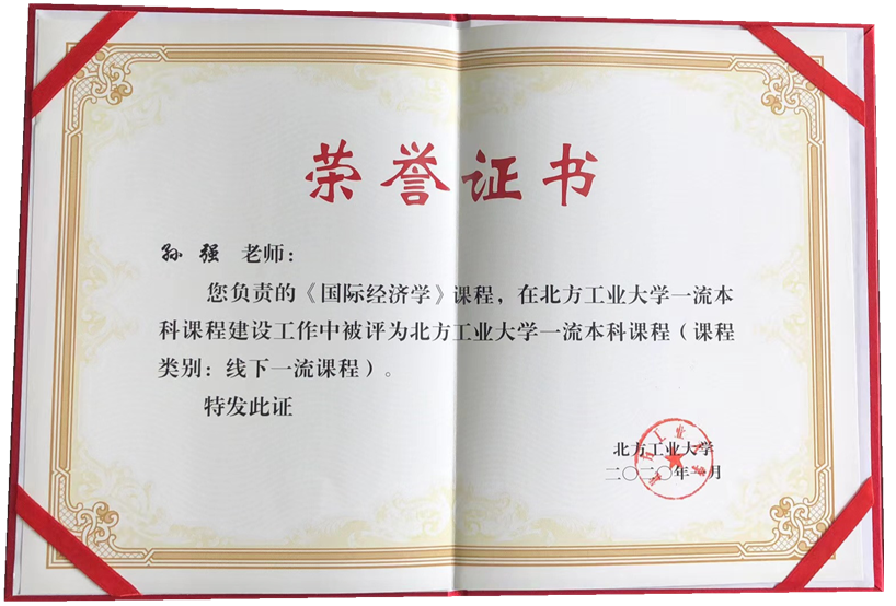 孙强老师负责的《国际经济学》课程被评为 永利集团3044am官方入口一流本科课程 |