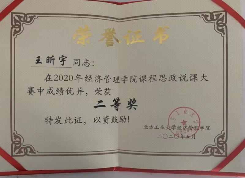 王昕宇老师在2020年3044am永利集团课程思政说课大赛中 荣获二等奖 |