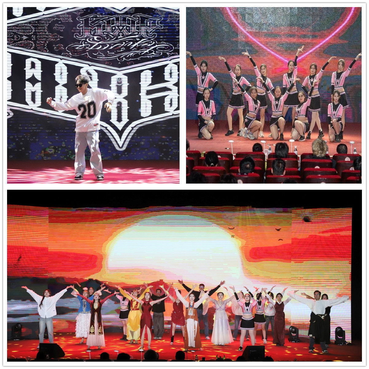 炫彩的灯光闪亮全场,舞者们用灵动的身姿演绎着青春的旋律,他们的动作整齐有力,仿佛每一个节拍都能敲打出激情,他们用舞蹈表现着内心对于美好未来的追求与向往。青春的色彩在舞蹈中渲染,绽放出独特的魅力;青春的旋律在舞蹈中演绎,激情与梦想在这一刻完美融合。