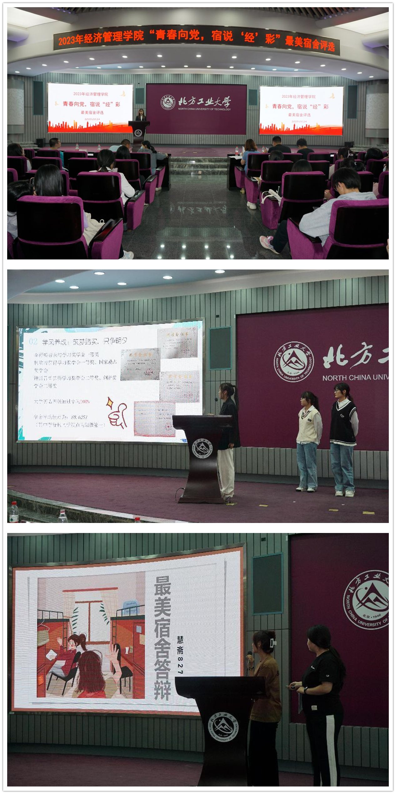 为进一步加强学风和宿风建设,营造团结向上的宿舍氛围,发挥优秀宿舍的榜样示范作用,5月24日下午,3044am永利集团在广学楼报告厅举办“青春向党 宿说‘经’彩”最美宿舍评选活动。学院党委副书记王帏、各年级辅导员参加本次活动,评委由与会教师和学生评审团共同组成。