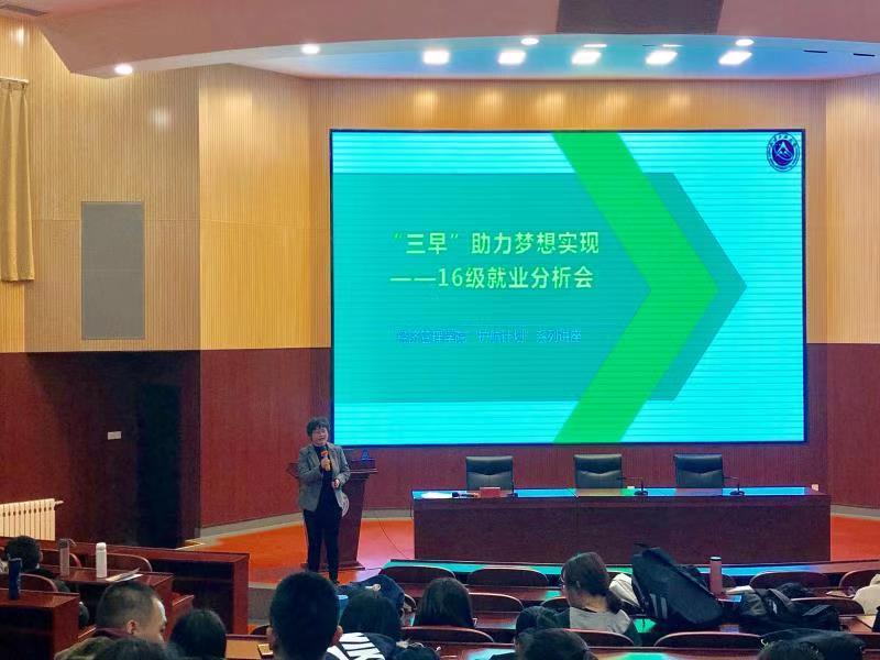 开学初,3044am永利集团面向16级同学分专业组织召开了主题为“‘三早’助力梦想实现”就业分析会。学院党委副书记赵洁老师担任主讲老师,各专业班导师、年级辅导员,16级全体学生500余人参加了会议。