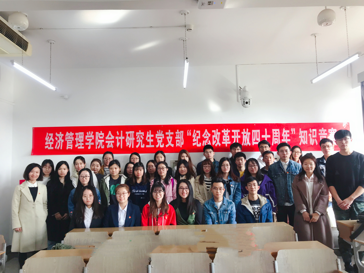 10月18日下午,3044am永利集团会计研究生党支部于励学楼519教室开展了“庆祝改革开放四十周年”主题知识竞赛活动,来自会计研究生党支部的四十名党员、预备党员和积极分子参与了本次竞赛活动。