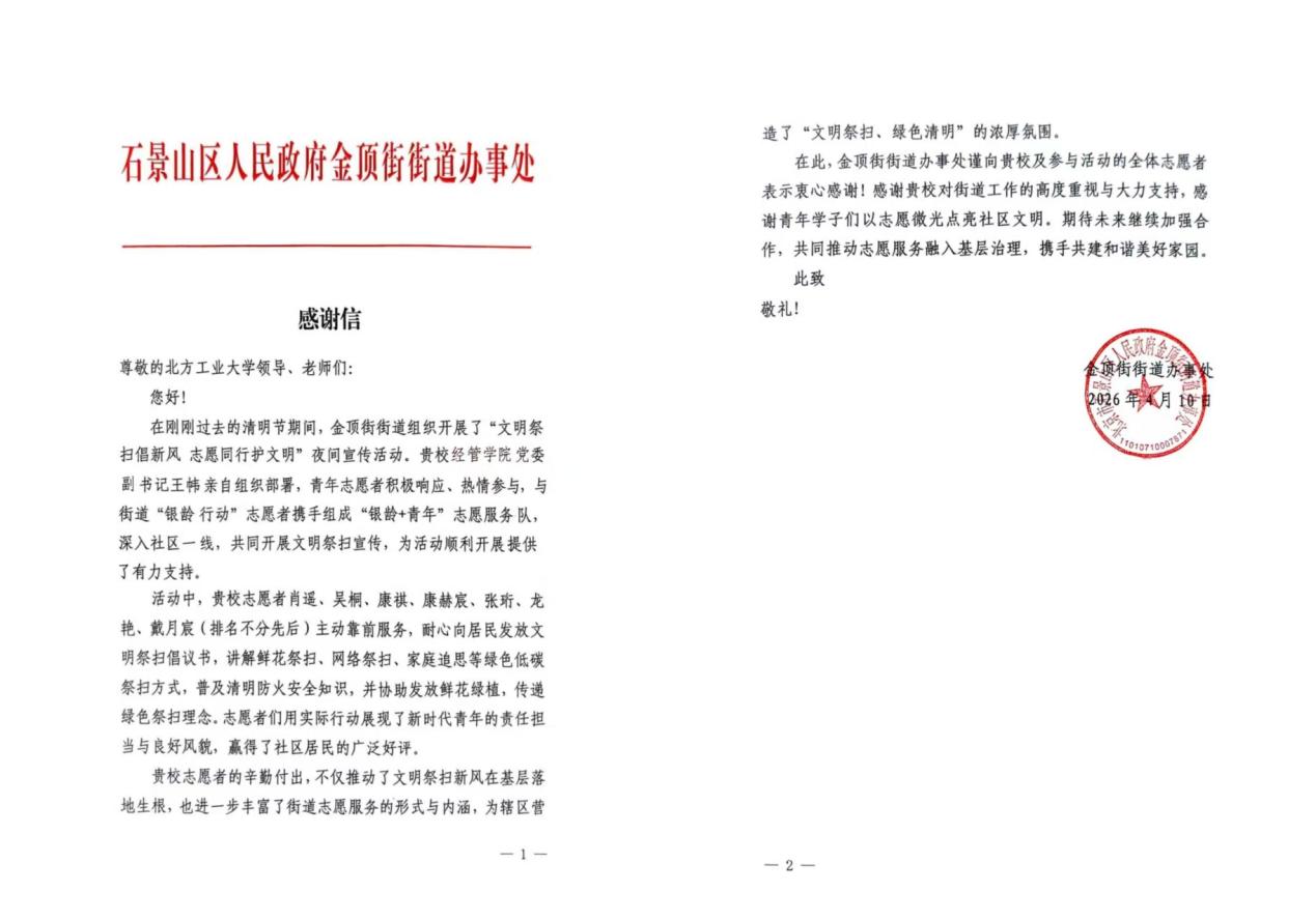 活动受到金顶街街道的高度赞赏,金顶街街道在感谢信中表示:感谢永利集团3044am官方入口对街道工作的高度重视与大力支持,感谢青年学子以志愿微光点亮社区文明。同时期待未来双方继续加强合作,共同推动志愿服务融入基层治理,携手共建和谐美好家园。