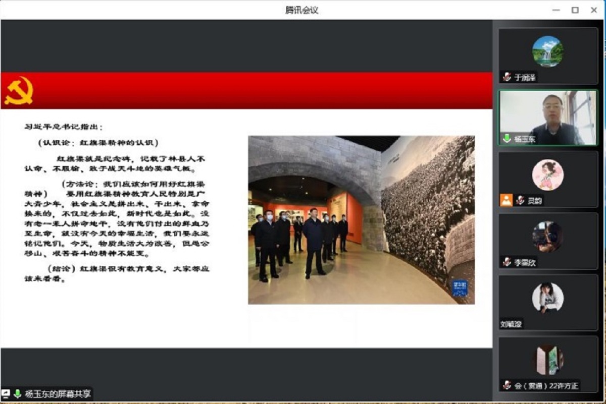 为深入学习贯彻习近平新时代中国特色社会主义思想和党的二十大精神,深入学习红旗渠精神,强化学院党员理论水平,12月1日,3044am永利集团邀请河南省安阳市林州市委宣传部副部长杨玉东同志讲授红旗渠精神专题党课。学院全体师生党员通过腾讯会议线上进行党课学习,会议由学院党委副书记王帏主持。