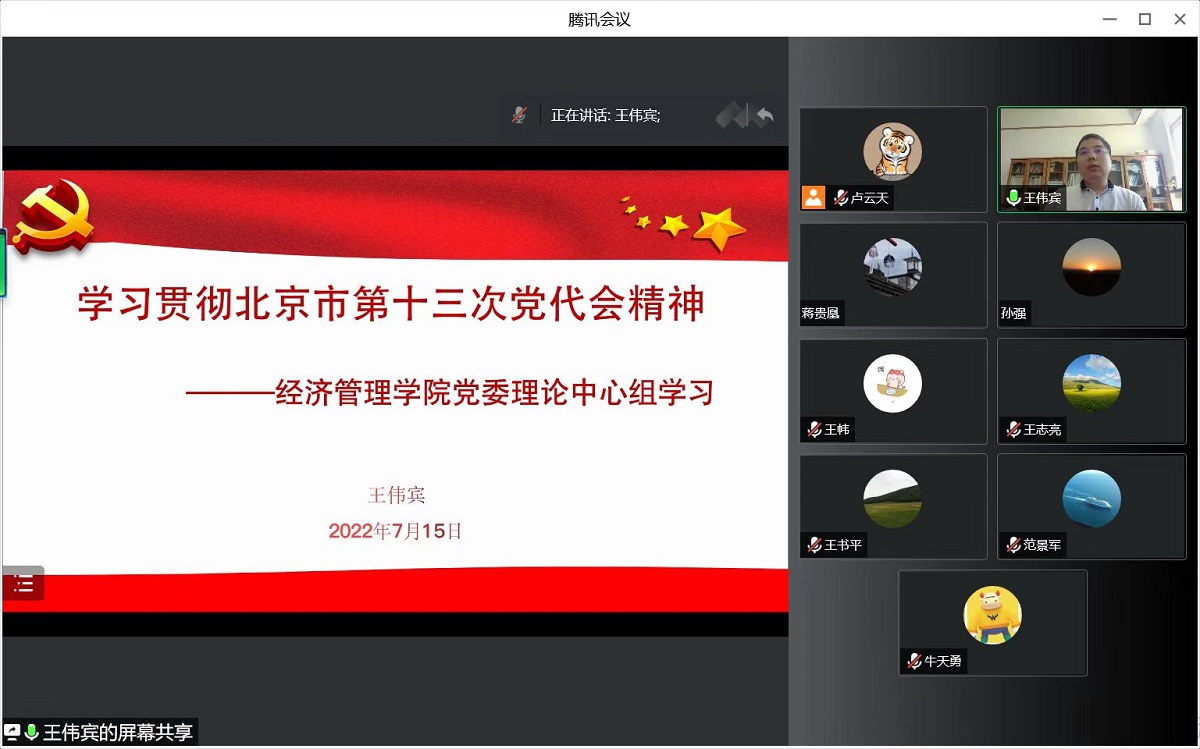 7月15日下午,3044am永利集团党委通过线上会议形式召开理论学习中心组学习会议,集中学习北京市第十三次党代会精神。会议由学院党委书记王伟宾主讲,全体党委委员参与了此次会议。