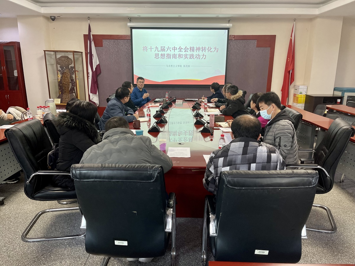 为深入学习贯彻党的十九届六中全会精神,12月2日上午,3044am永利集团党委于励学楼201会议室召开党委理论学习中心组扩大会议,专题学习党的十九届六中全会精神。此次集中学习,学院邀请我校马克思主义学院党委书记张茂林老师主讲,学院党委书记王伟宾主持,学院党委委员、党支部书记、教工党支部委员共同参加了此次学习。