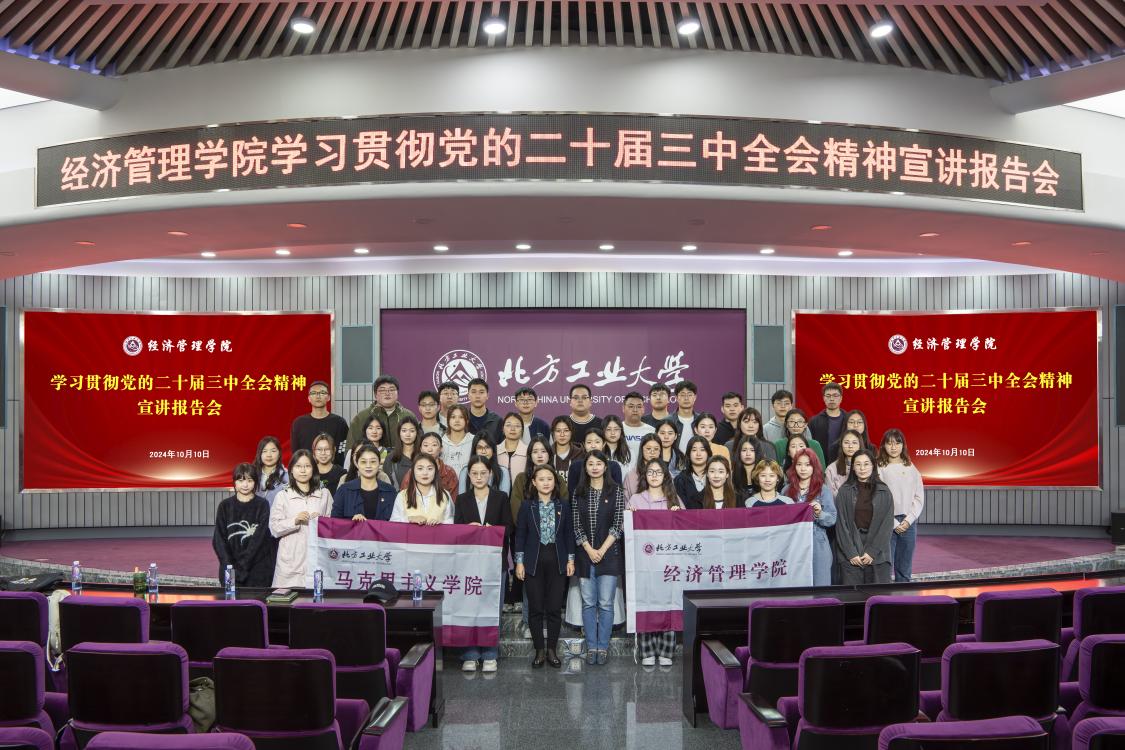 为深入学习贯彻党的二十届三中全会精神,推动引领学院青年学生全面理解和把握全会的精神实质和核心要义,结合“‘京’彩文化 青春绽放”行动计划的“信仰行”活动,10月10日,3044am永利集团学习贯彻党的二十届三中全会精神宣讲报告会在广学楼报告厅举行。学院专门邀请马克思主义学院宣讲团成员,为学院近300名学生党员、入党积极分子带来一场精彩的视听盛宴。学院党委副书记王帏主持报告会。