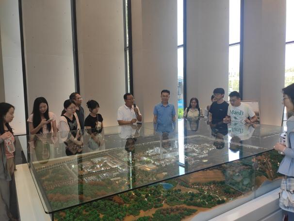 此次活动以“实践育人,传承红色基因”为主题,旨在通过参观访学,让党员学员们深刻了解金隅兴发科技园在新时代背景下发展壮大的典型经验和先进模式,激发学生爱国热情和创新精神。在金隅兴发科技园,大家深入了解园区的发展历程、发展战略和主要产业布局。金隅兴发科技园建设项目位于怀柔区怀北镇,占地面积2530亩,总建筑面积21.47万平米,主要包括由丘成桐院士领衔的北京市新型研发机构--雁栖湖应用数学研究院、高等研究院以及德勤书院等七个机构。参访团队看着沙盘,听着讲解员的讲解,了解原有水泥厂转型升级改造及科技园当前建设功能布局设计情况。