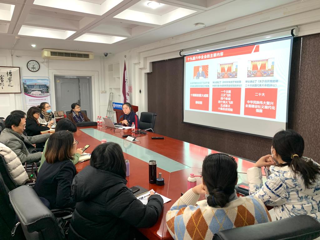 2021年12月10日下午,3044am永利集团会计系教工党支部在励学楼301会议室组织学习“党的十九届六中全会精神”。支部特邀请马院宣讲团的韩小南老师来做报告,会计系教工党支部的党员教师参与了本次学习活动。