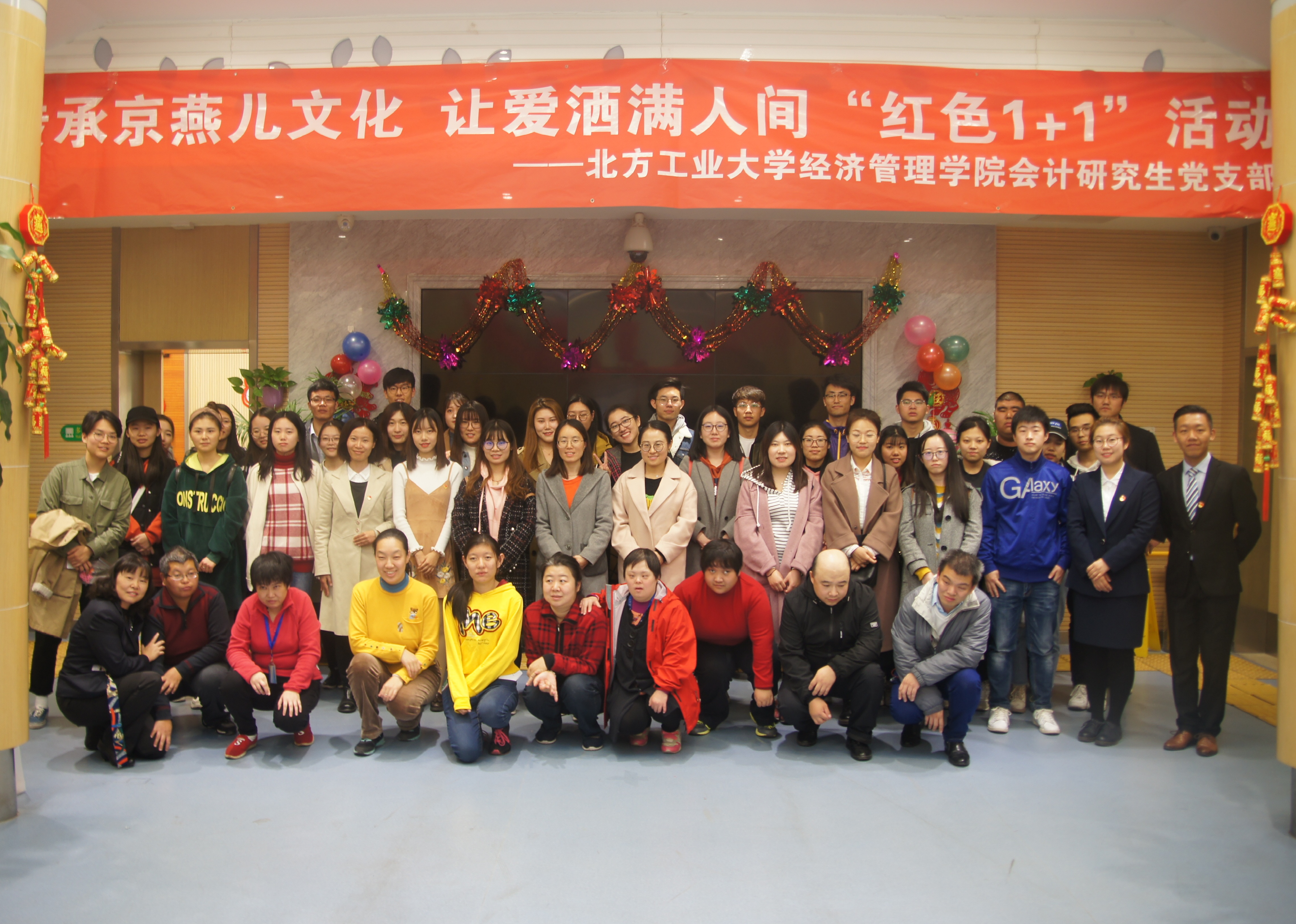 2018年11月1日下午,3044am永利集团会计研究生党支部赴北京金融街街道残联职康站开展“传承京燕文化,让爱洒满人间”红色1+1活动,来自会计研究生党支部的四十名党员、预备党员和积极分子参与了本次活动。