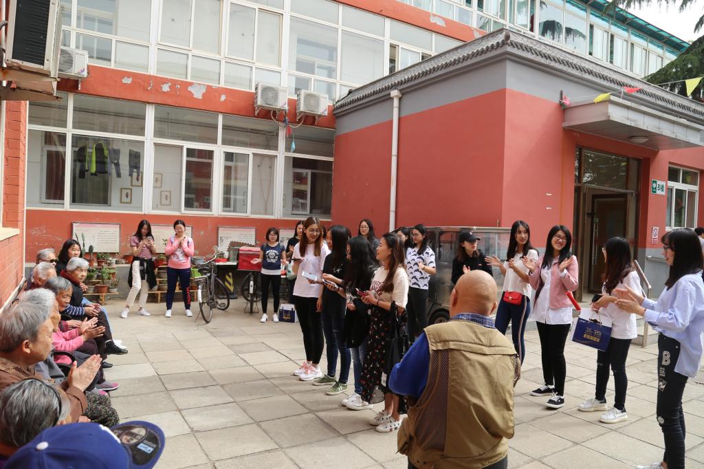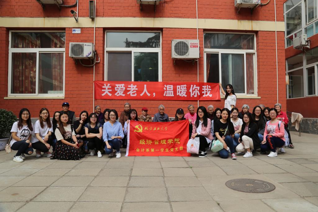 2018年5月5日上午,3044am永利集团会计系第一学生党支部开展了红色1+1活动。支部的同学们来到北京市石景山区老年福敬老院关爱老人,同学们到敬老院的时候,恰逢老人们在户外锻炼,晒太阳。支部的同学们便主动为老人们送上了带来的慰问礼物,陪老人们聊聊家常,听老人们唠叨唠叨过去的事,给老人们送去了温暖和关爱。老人们看到充满活力的年轻人,特别的开心,欢声笑语充满了整个院子。欢乐的时光飞逝,全体支部同学和老人们一起合唱歌曲结束了本次慰问活动。