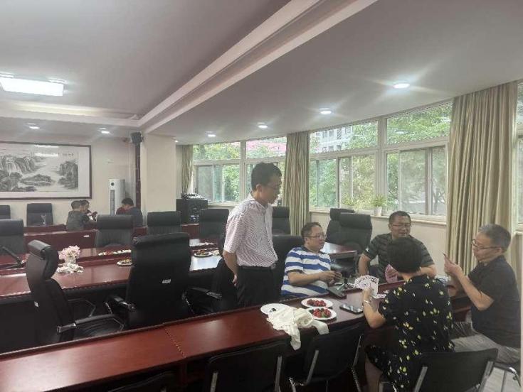 2024年7月12日中午12:00-13:30在励学楼201,经管学院举办工会活动——棋牌赛。比赛项目有掼蛋、双升、斗地主、中国象棋、五子棋。共有五十多名教师参加。老师们自由组合、自己制定比赛输赢规则。场面热闹,气氛热烈。当时正是酷夏暑热之时,为了给老师们解暑,工会小组还贴心的准备了葡萄、话梅等解暑的水果、小吃。